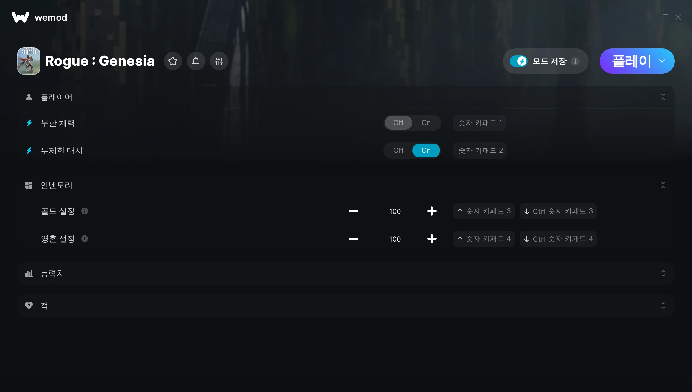 Rogue : Genesia에서 치트를 사용하려면 어떻게 해야 하나요?WeMod는 PC의 모든 게임을 표시합니다. 목록에서 게임을 선택하고 플레이를 누르세요. 게임을 시작하면 다양한 치트를 활성화할 수 있습니다!모드가 제 게임 버전과 호환될까요?WeMod는 고급 기술로 실행 중인 게임 버전을 탐지하고 모드 지원 여부를 표시합니다. 모드가 지원되지 않는다면 모드를 테스트해보거나 업데이트를 요청할 수 있습니다!