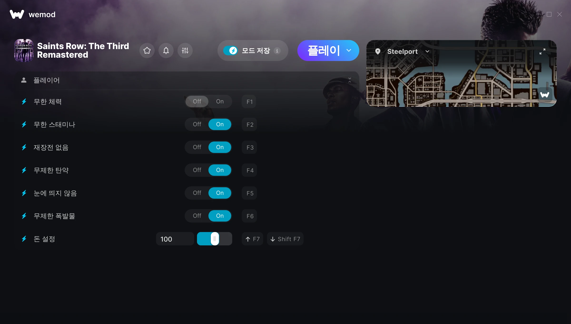 The mods work really well and I love how you can assign your ow shortcuts in game. I hope that you can add mod saves were WeMod remembers mods you've activated so you don't have to keep activating them.