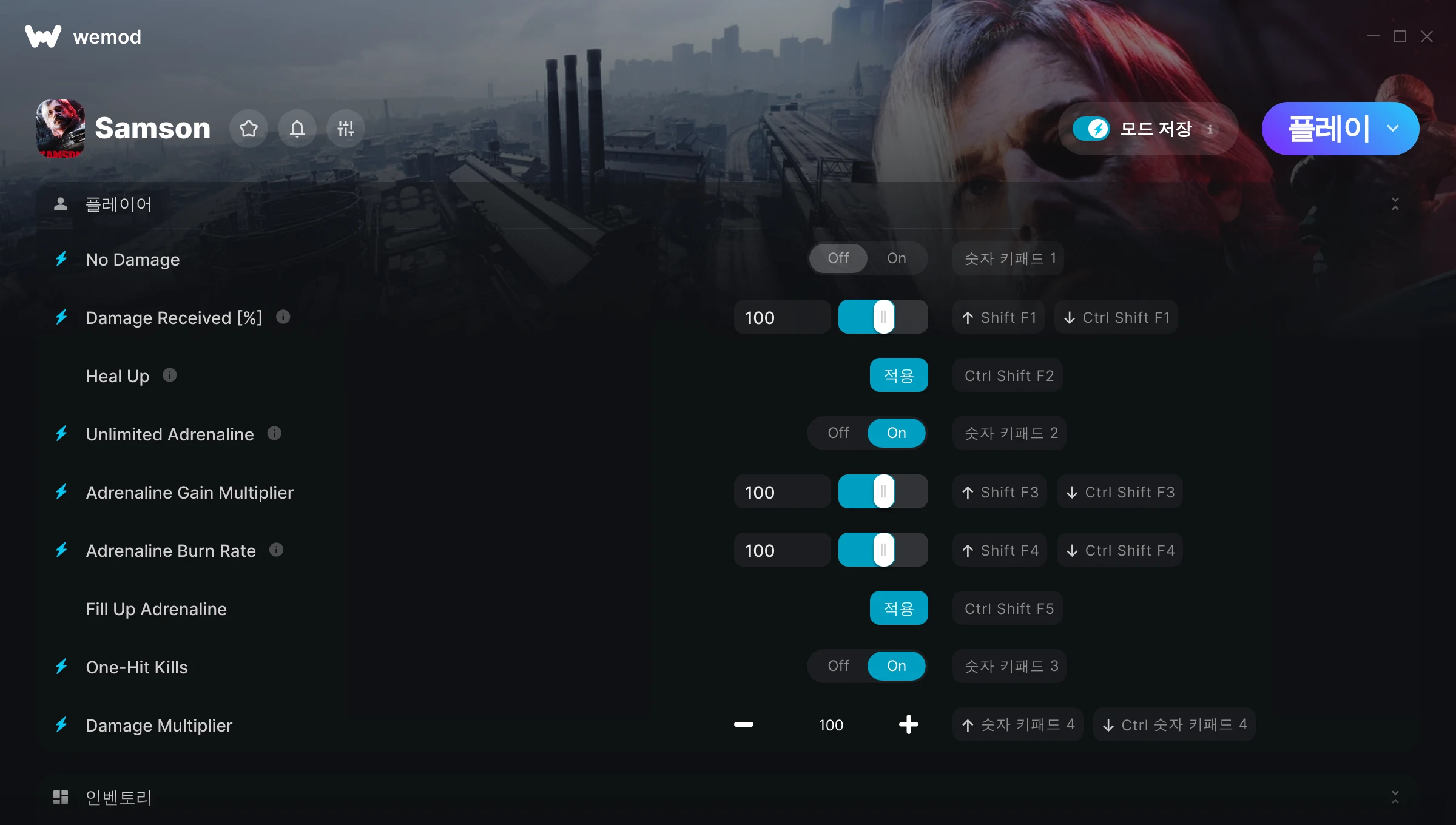 85MB Windows ...또는 PC에서 WeMod를 방문해 앱을 다운로드할 수도 있습니다 No Damage 받기, Damage Received [%] & 27개의 다른 모드 for Samson with WeMod