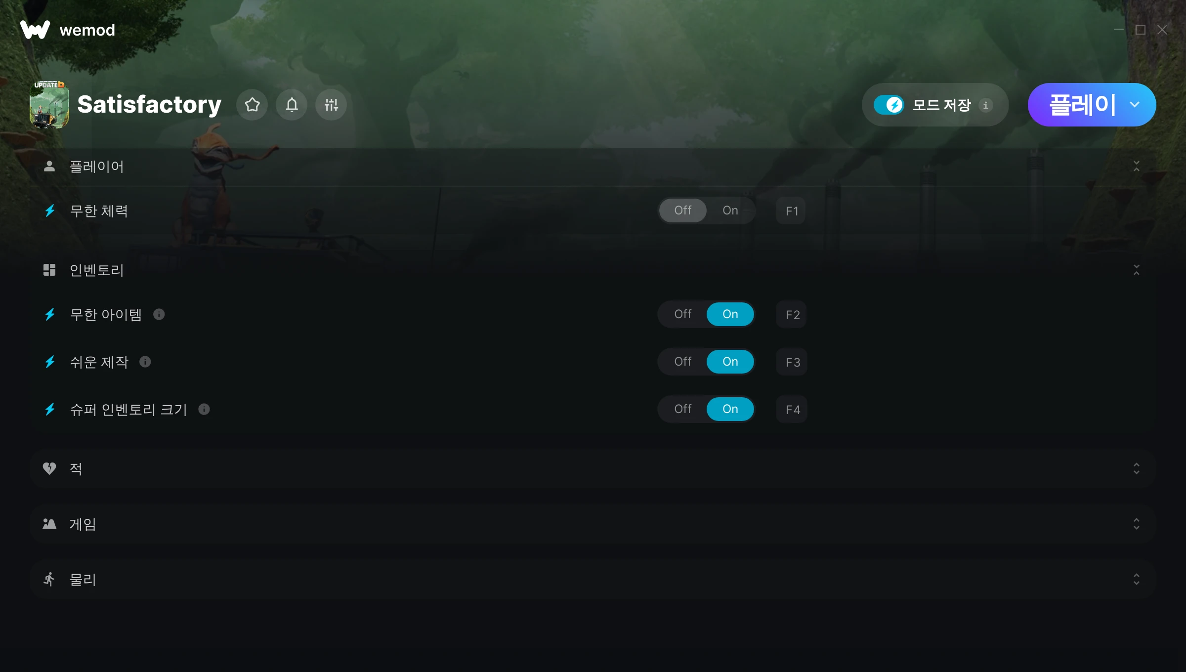 the cheats work very well, good work. thanks, i use the running and jumping a lot to cut time, but i like to do items and inventory legit, so not so much. also good to have F1 be a safety if i fall from a high place while building a sky bridge.