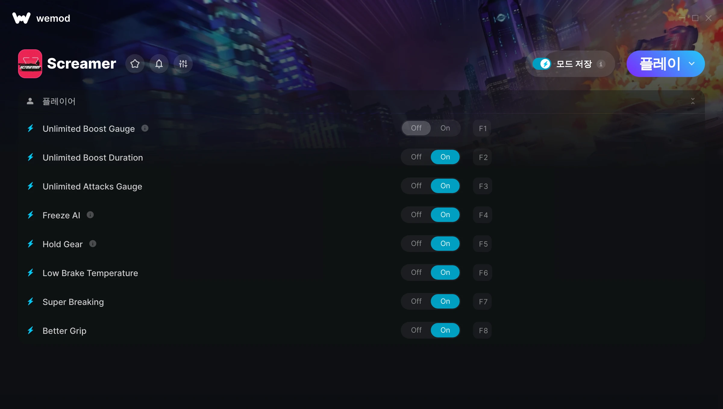 85MB Windows ...또는 PC에서 WeMod를 방문해 앱을 다운로드할 수도 있습니다 무제한 부스트 게이지 받기, 무제한 부스트 지속 시간 & 6개의 다른 모드 for Screamer with WeMod
