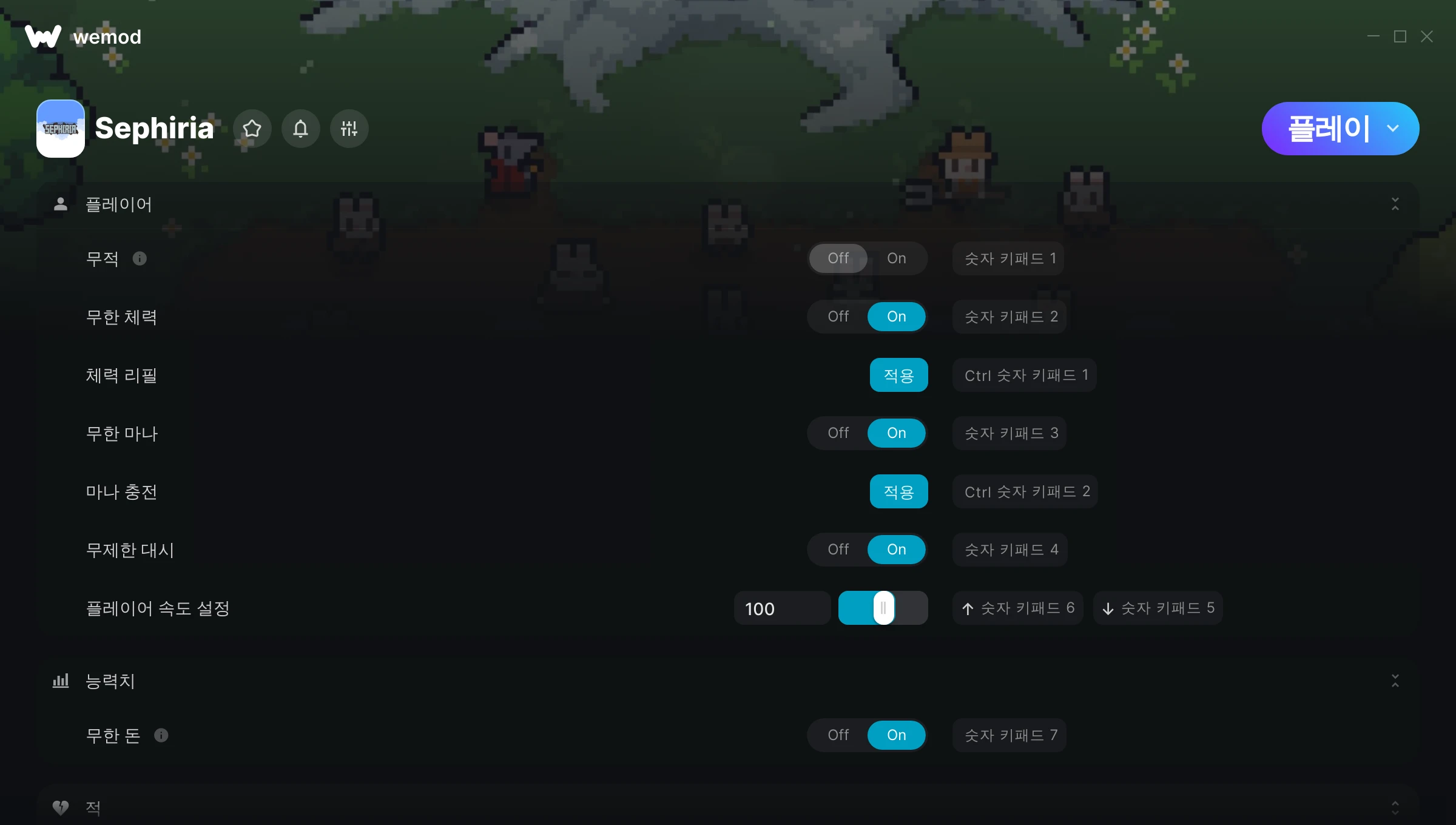 Sephiria에서 치트를 사용하려면 어떻게 해야 하나요?WeMod는 PC의 모든 게임을 표시합니다. 목록에서 게임을 선택하고 플레이를 누르세요. 게임을 시작하면 다양한 치트를 활성화할 수 있습니다!모드가 제 게임 버전과 호환될까요?WeMod는 고급 기술로 실행 중인 게임 버전을 탐지하고 모드 지원 여부를 표시합니다. 모드가 지원되지 않는다면 모드를 테스트해보거나 업데이트를 요청할 수 있습니다!