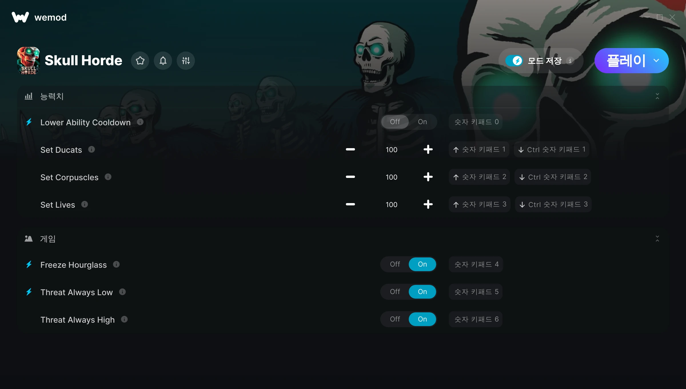 Skull Horde에서 치트를 사용하려면 어떻게 해야 하나요?WeMod는 PC의 모든 게임을 표시합니다. 목록에서 게임을 선택하고 플레이를 누르세요. 게임을 시작하면 다양한 치트를 활성화할 수 있습니다!모드가 제 게임 버전과 호환될까요?WeMod는 고급 기술로 실행 중인 게임 버전을 탐지하고 모드 지원 여부를 표시합니다. 모드가 지원되지 않는다면 모드를 테스트해보거나 업데이트를 요청할 수 있습니다!