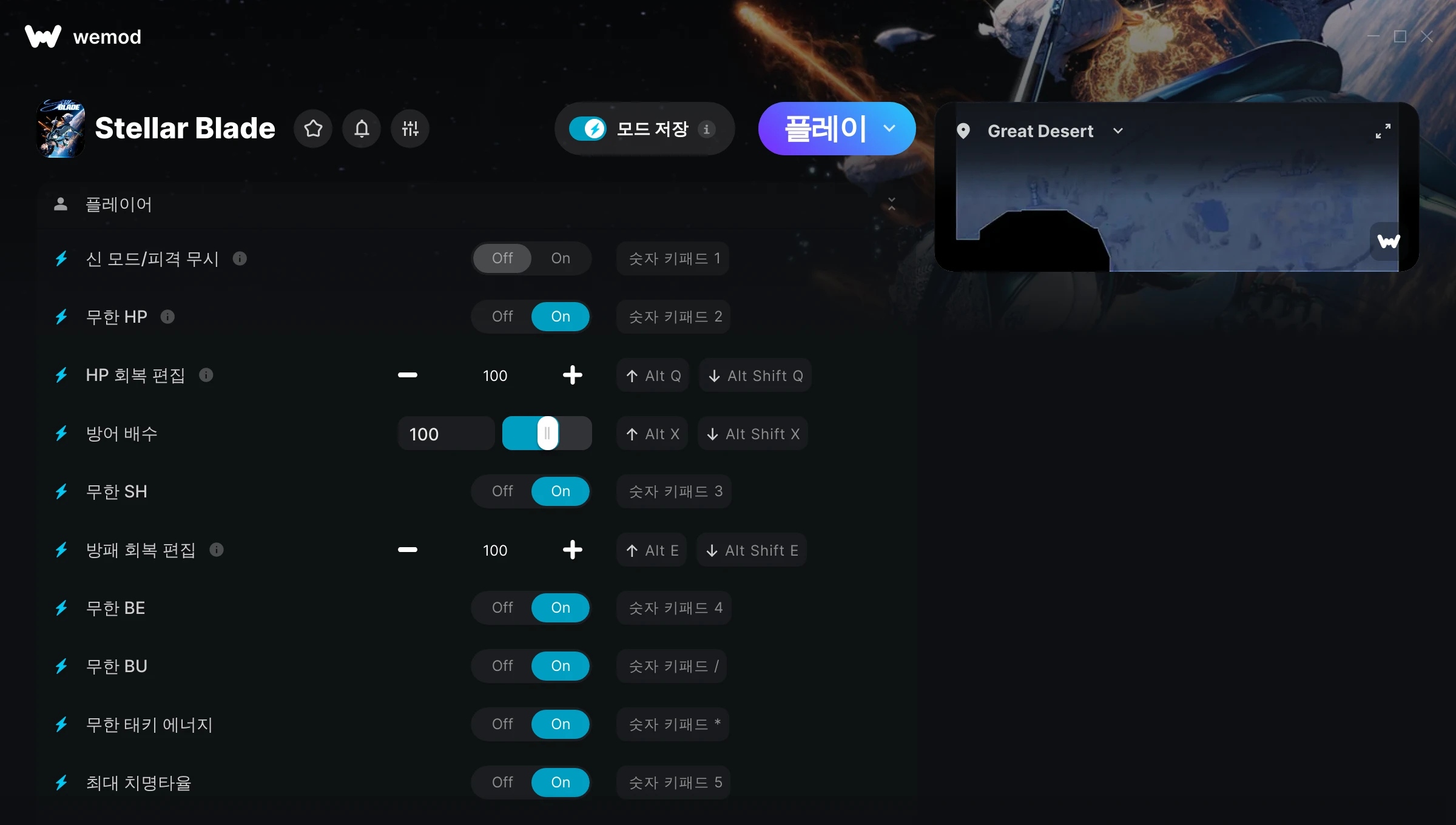 wow it help a lot in battle, the mods solve the battle problem that stellar blade have, its like make for 1 v1 boss fight only ,when you run into massive number enemy it will have difficult to aim and hit... Thanks to WEMOD now can enjoy the game more fun.