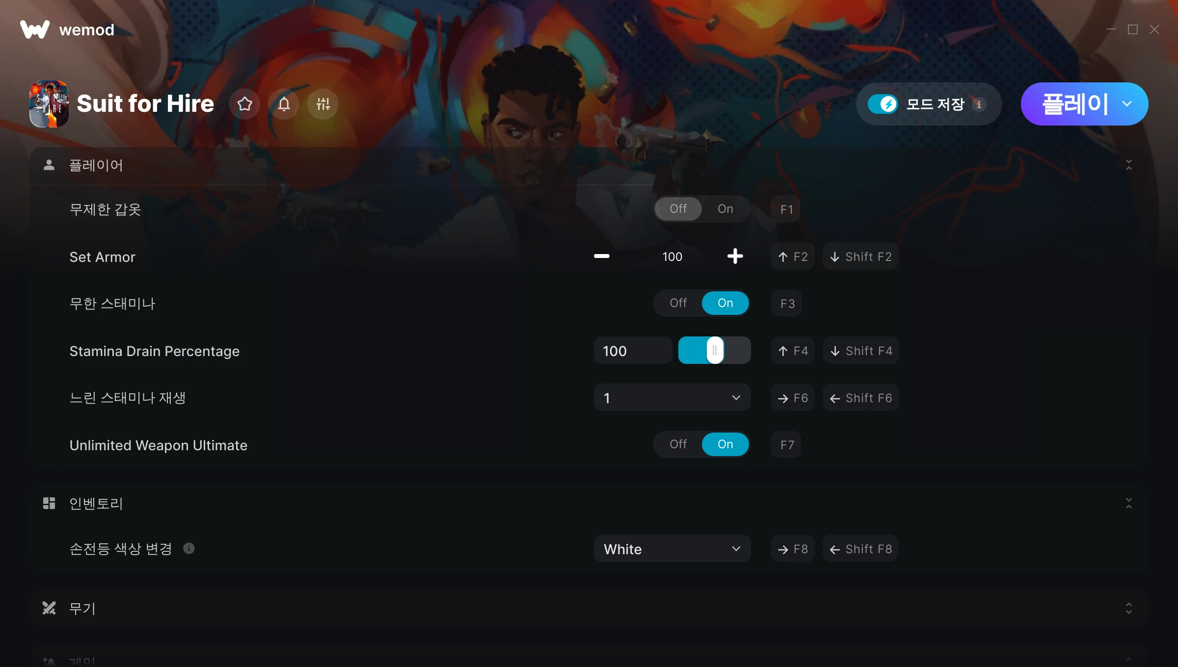 Suit for Hire에서 치트를 사용하려면 어떻게 해야 하나요?WeMod는 PC의 모든 게임을 표시합니다. 목록에서 게임을 선택하고 플레이를 누르세요. 게임을 시작하면 다양한 치트를 활성화할 수 있습니다!모드가 제 게임 버전과 호환될까요?WeMod는 고급 기술로 실행 중인 게임 버전을 탐지하고 모드 지원 여부를 표시합니다. 모드가 지원되지 않는다면 모드를 테스트해보거나 업데이트를 요청할 수 있습니다!