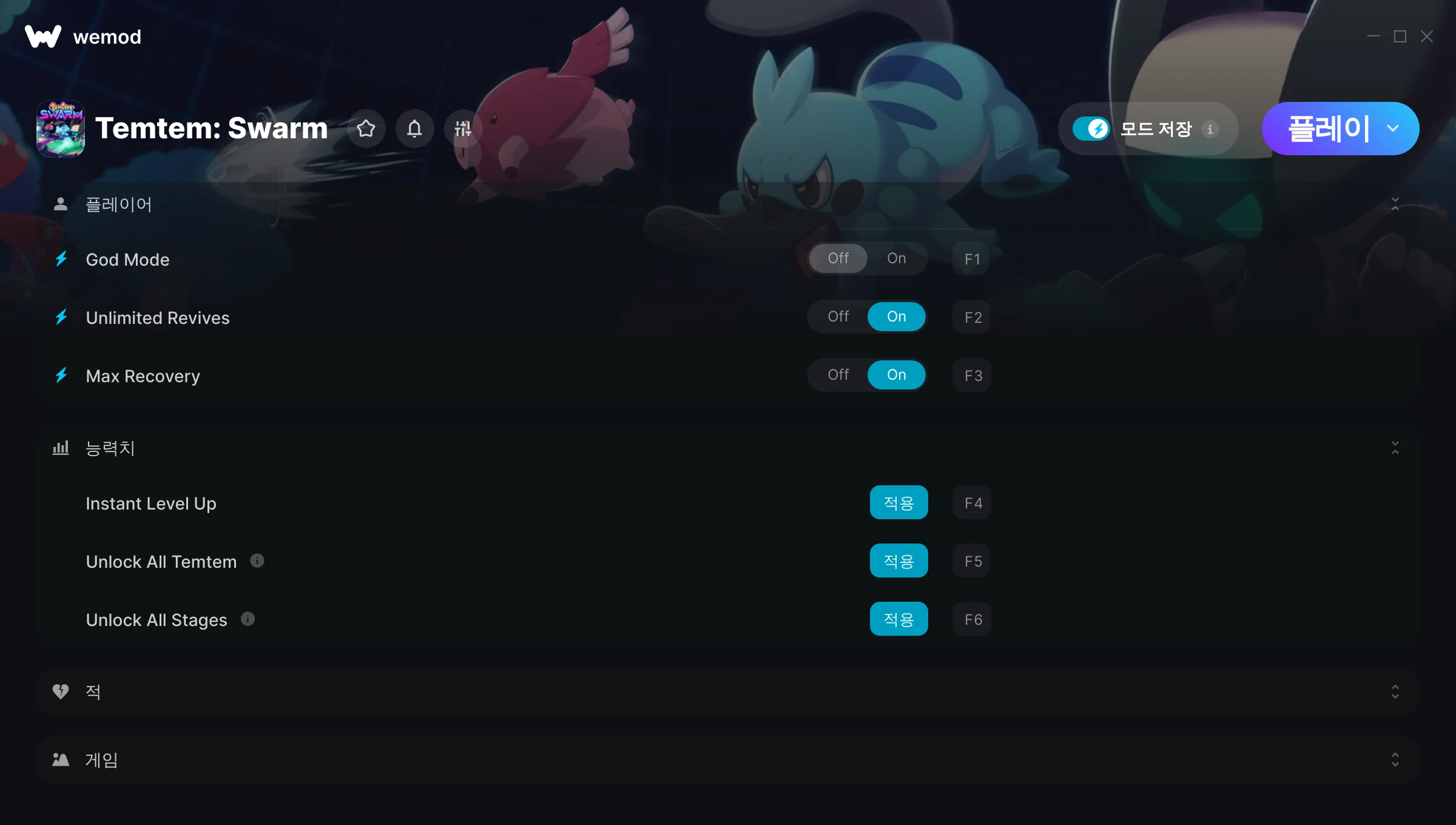 85MB Windows ...또는 PC에서 WeMod를 방문해 앱을 다운로드할 수도 있습니다 God Mode 받기, Unlimited Revives & 9개의 다른 모드 for Temtem: Swarm with WeMod