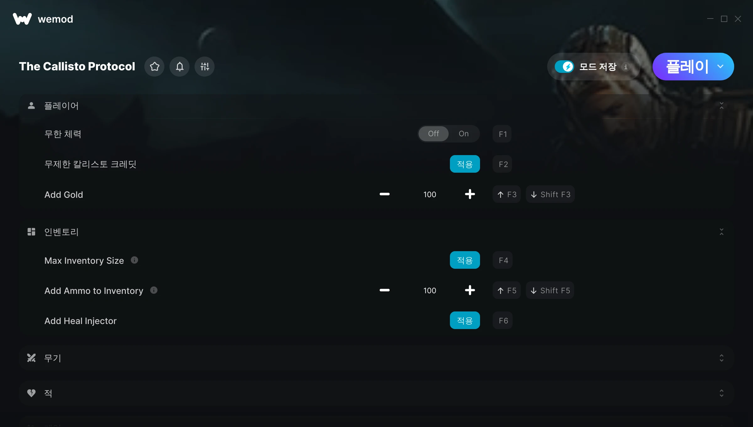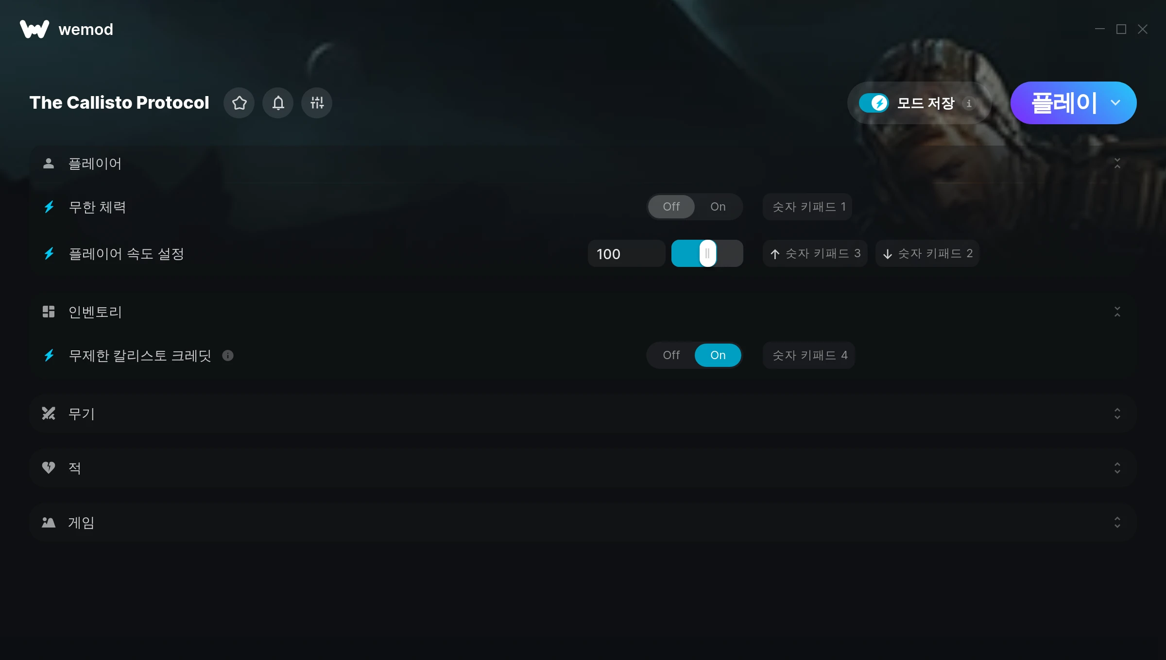 im so happy these mods exist. i use them to play the Callisto Protocol which as many know can be a tedious game and at many times hard to enjoy. because of the mods i can now enjoy the game the way i want. i was incredibly hyped when i first heard about this game only to be severely disappointed. Now im having fun enjoying the story more rather than constantly dying and getting frustrated. thank you so much WeMod for making all this. i thought it would be impossible to ever enjoy this game and now i have the opportunity to have fun.
