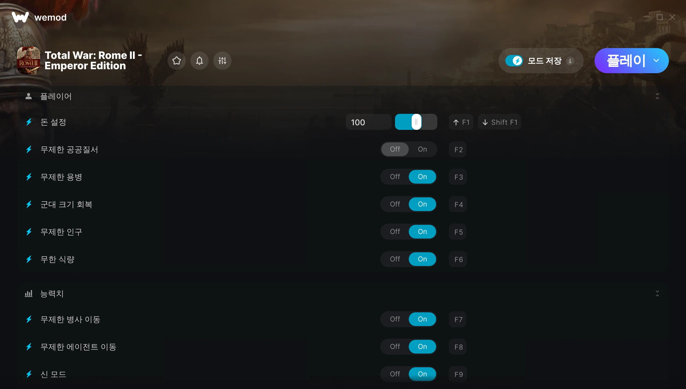 amazing thank you so much for this mod. I bought total war Rome 2 thinking I could use console commands i was wrong. so thank you much Wemod
