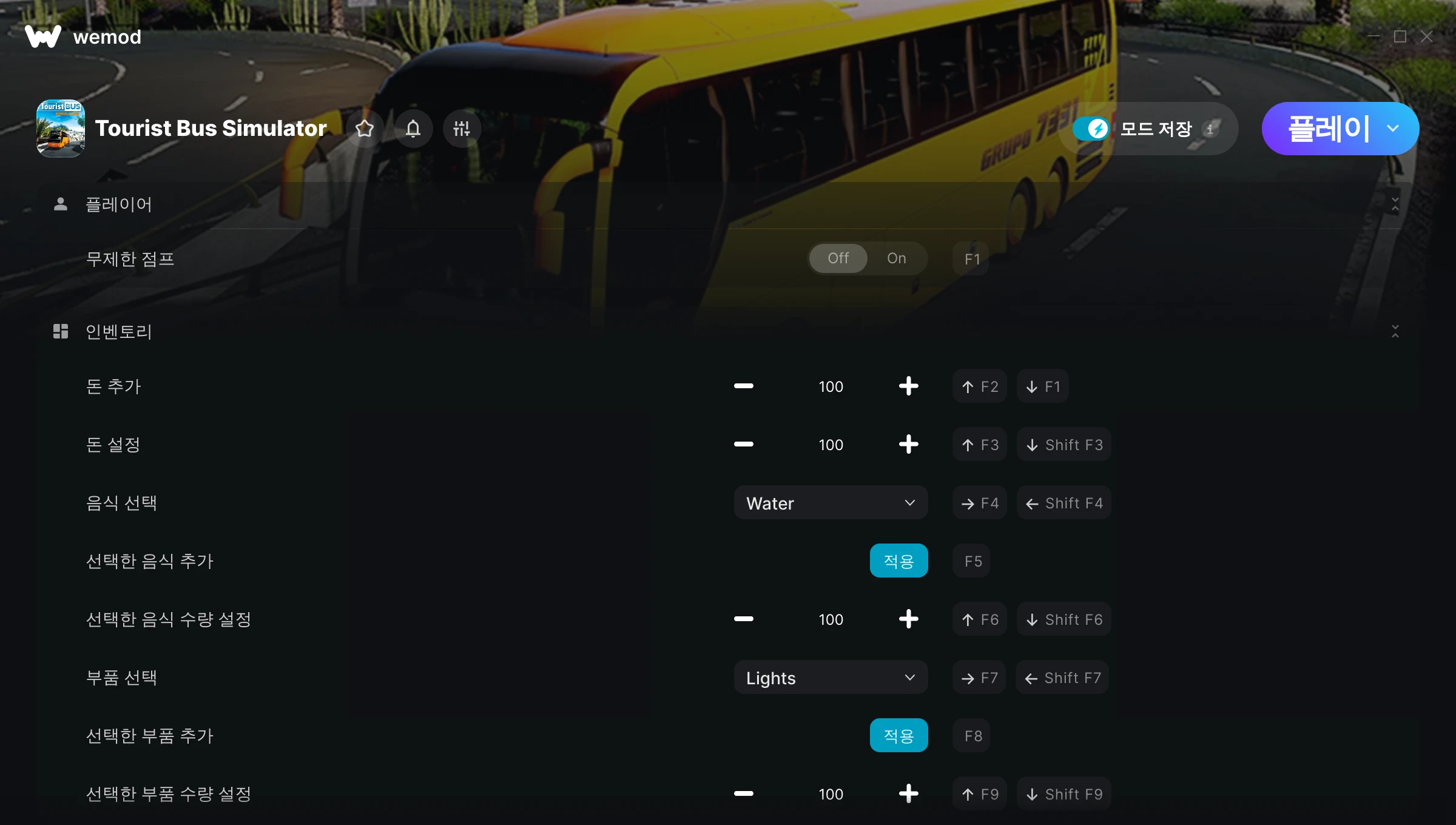 Tourist Bus Simulator에서 치트를 사용하려면 어떻게 해야 하나요?WeMod는 PC의 모든 게임을 표시합니다. 목록에서 게임을 선택하고 플레이를 누르세요. 게임을 시작하면 다양한 치트를 활성화할 수 있습니다!모드가 제 게임 버전과 호환될까요?WeMod는 고급 기술로 실행 중인 게임 버전을 탐지하고 모드 지원 여부를 표시합니다. 모드가 지원되지 않는다면 모드를 테스트해보거나 업데이트를 요청할 수 있습니다!