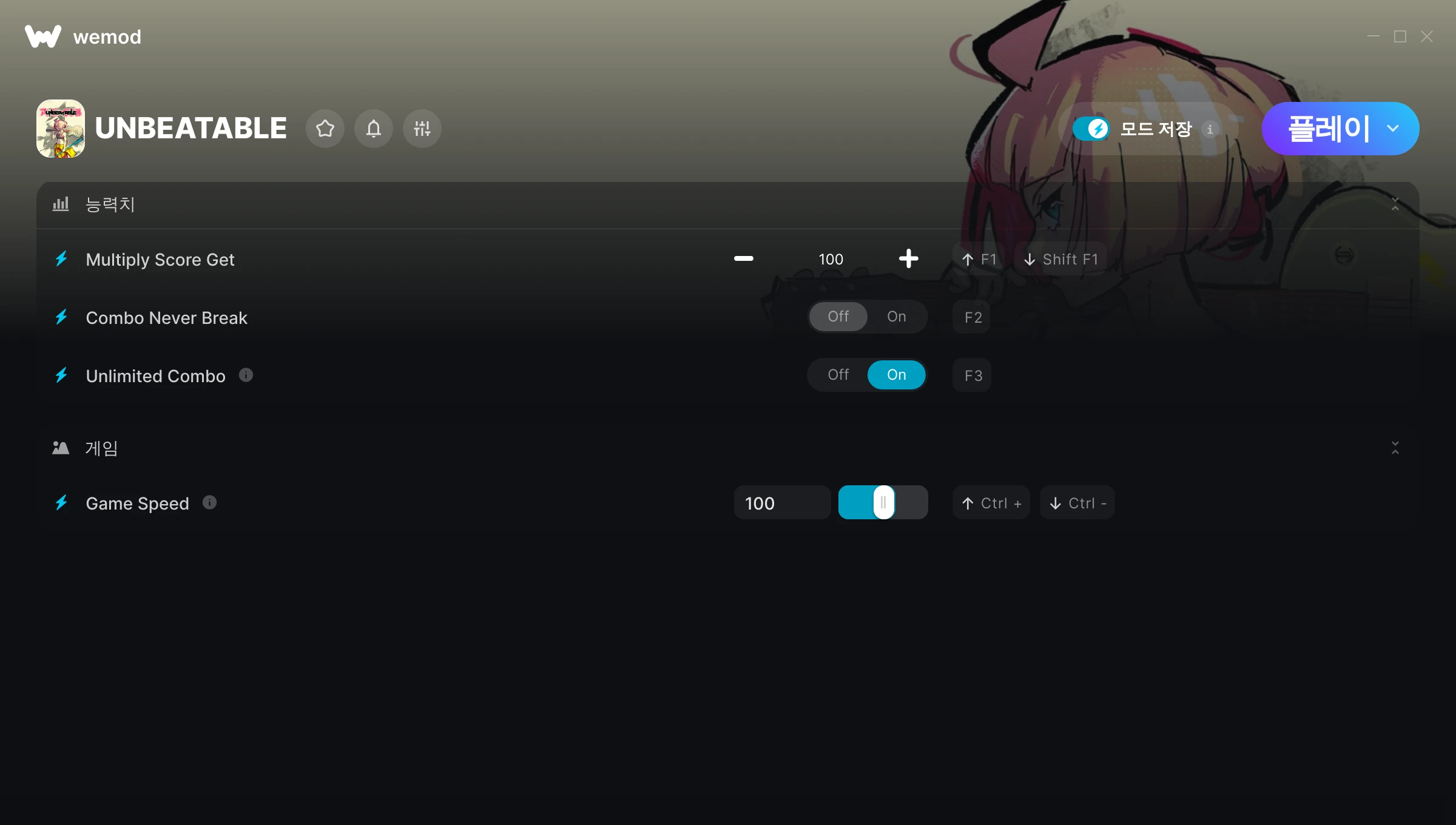UNBEATABLE에서 치트를 사용하려면 어떻게 해야 하나요?WeMod는 PC의 모든 게임을 표시합니다. 목록에서 게임을 선택하고 플레이를 누르세요. 게임을 시작하면 다양한 치트를 활성화할 수 있습니다!모드가 제 게임 버전과 호환될까요?WeMod는 고급 기술로 실행 중인 게임 버전을 탐지하고 모드 지원 여부를 표시합니다. 모드가 지원되지 않는다면 모드를 테스트해보거나 업데이트를 요청할 수 있습니다!
