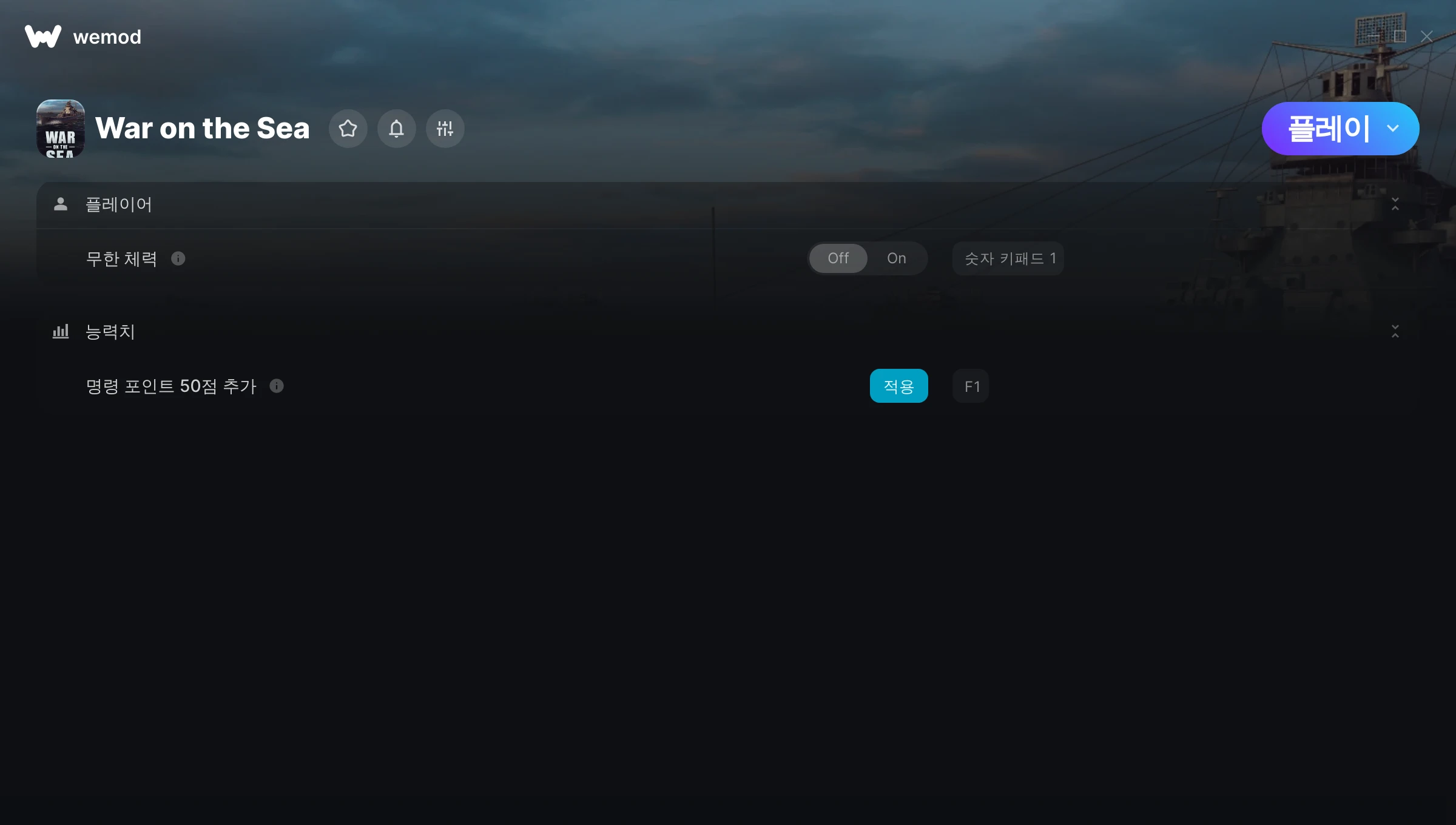 85MB Windows ...또는 PC에서 WeMod를 방문해 앱을 다운로드할 수도 있습니다 무한 체력 받기, 명령 포인트 50점 추가 for War on the Sea with WeMod