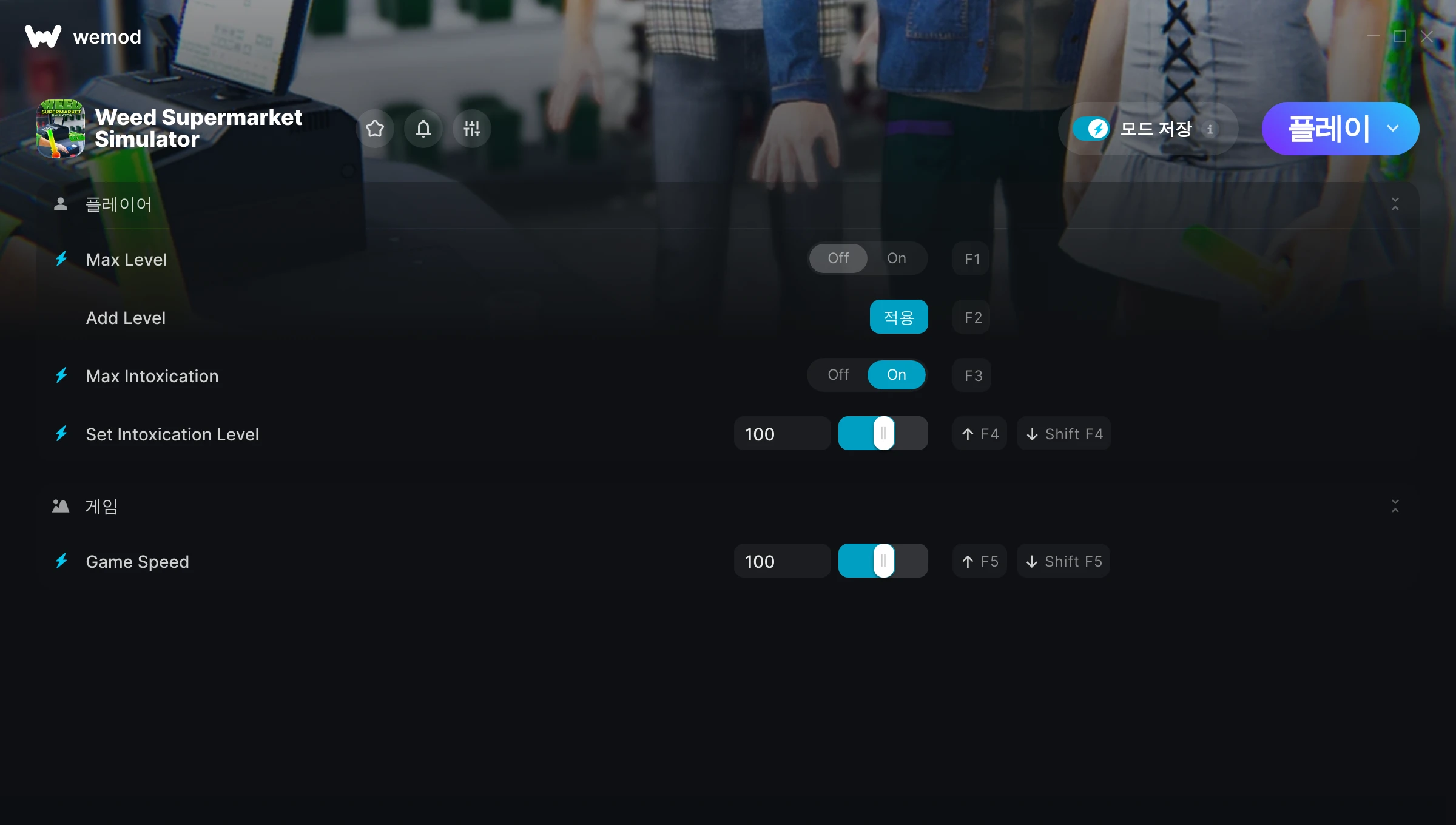 Weed Supermarket Simulator에서 치트를 사용하려면 어떻게 해야 하나요?WeMod는 PC의 모든 게임을 표시합니다. 목록에서 게임을 선택하고 플레이를 누르세요. 게임을 시작하면 다양한 치트를 활성화할 수 있습니다!모드가 제 게임 버전과 호환될까요?WeMod는 고급 기술로 실행 중인 게임 버전을 탐지하고 모드 지원 여부를 표시합니다. 모드가 지원되지 않는다면 모드를 테스트해보거나 업데이트를 요청할 수 있습니다!