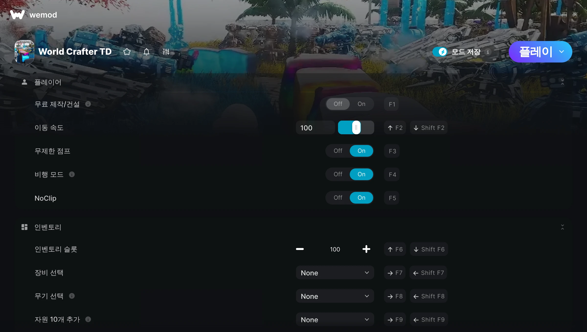 World Crafter TD에서 치트를 사용하려면 어떻게 해야 하나요?WeMod는 PC의 모든 게임을 표시합니다. 목록에서 게임을 선택하고 플레이를 누르세요. 게임을 시작하면 다양한 치트를 활성화할 수 있습니다!모드가 제 게임 버전과 호환될까요?WeMod는 고급 기술로 실행 중인 게임 버전을 탐지하고 모드 지원 여부를 표시합니다. 모드가 지원되지 않는다면 모드를 테스트해보거나 업데이트를 요청할 수 있습니다!