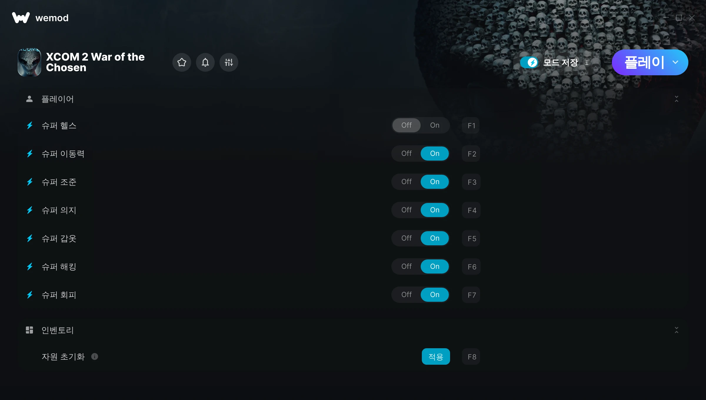 Mod works well. Now tried all the settings. Aim and Dodge are my main ones for some chance of surviving. Armor when in the Chosen strongholds.