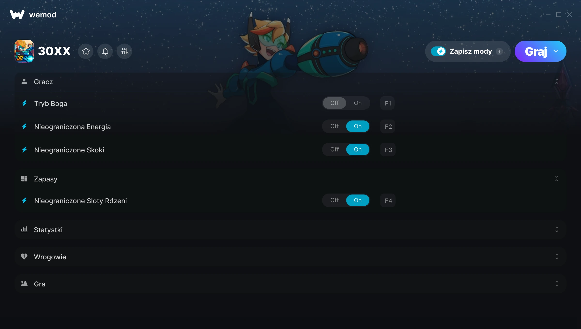 Dowiedz się więcejWeMod jest zawsze bezpieczny i darmowy dzięki naszej wielomilionowej społeczności graczy na całym świecie. Jesteśmy wspierani przez subskrybentów WeMod Pro. Sprawdź nasze recenzje na Trustpilot.