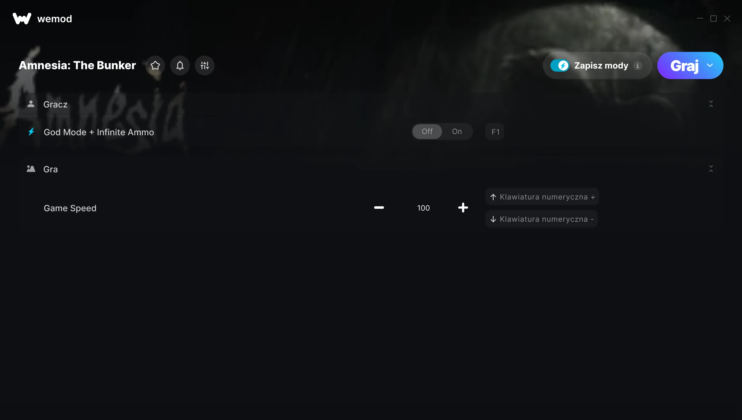 85MB Windows ...lub odwiedź nas na swoim komputerze, aby pobrać aplikację Pobierz Tryb Boga + Nieskończona Amunicja, Szybkość gry for Amnesia: The Bunker with WeMod
