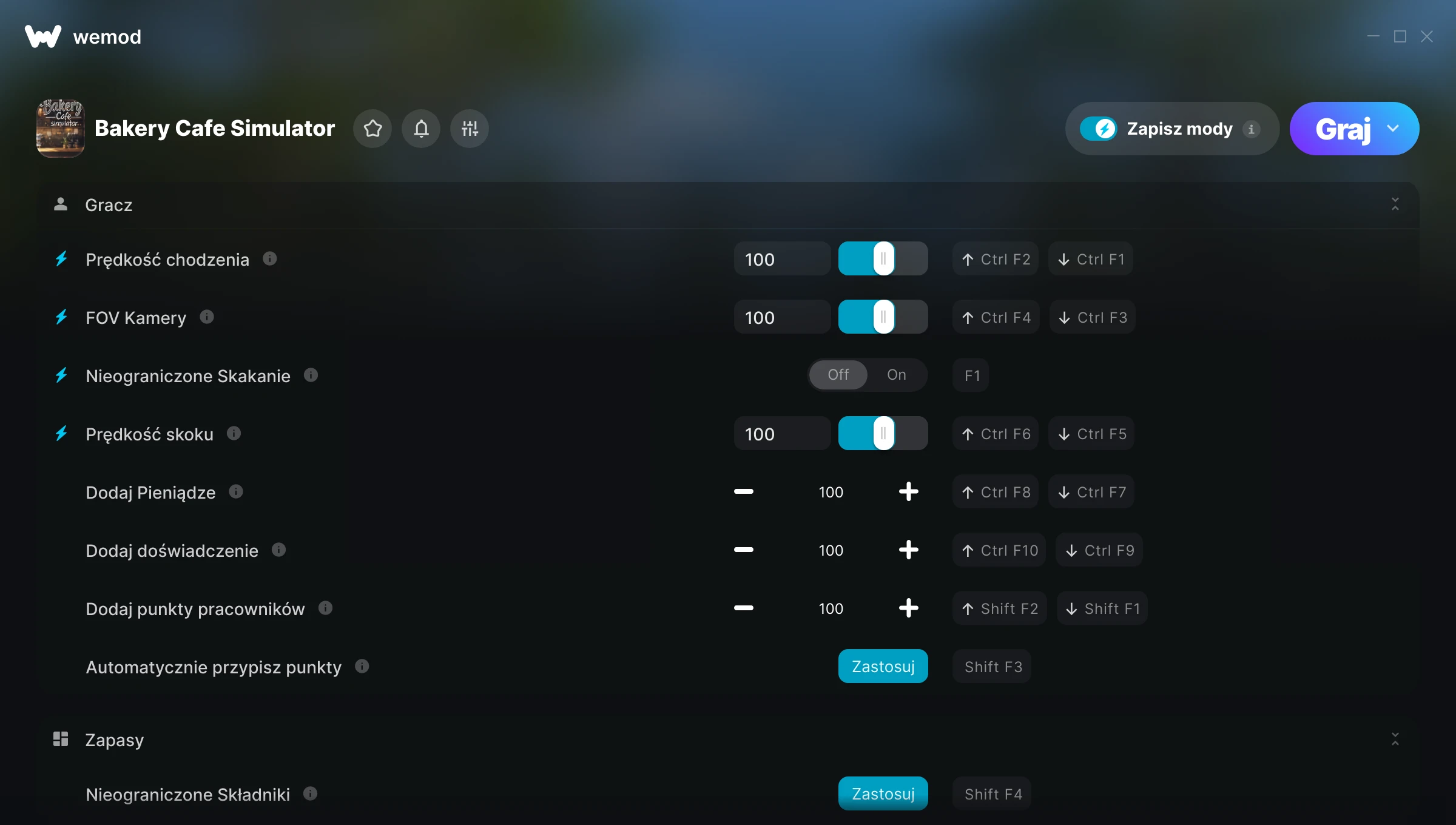 85MB Windows ...lub odwiedź nas na swoim komputerze, aby pobrać aplikację Pobierz Prędkość chodzenia, FOV Kamery & 14 inny mod for Bakery Cafe Simulator with WeMod