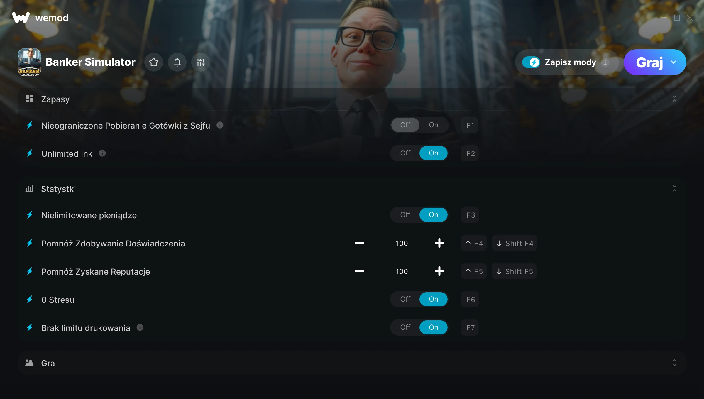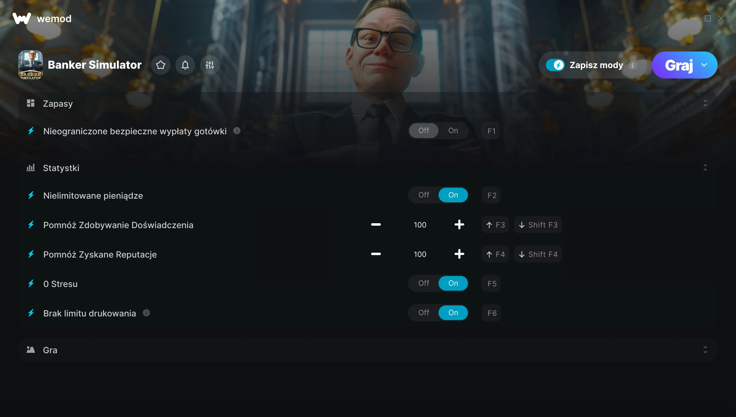 Dowiedz się więcejWeMod jest zawsze bezpieczny i darmowy dzięki naszej wielomilionowej społeczności graczy na całym świecie. Jesteśmy wspierani przez subskrybentów WeMod Pro. Sprawdź nasze recenzje na Trustpilot.