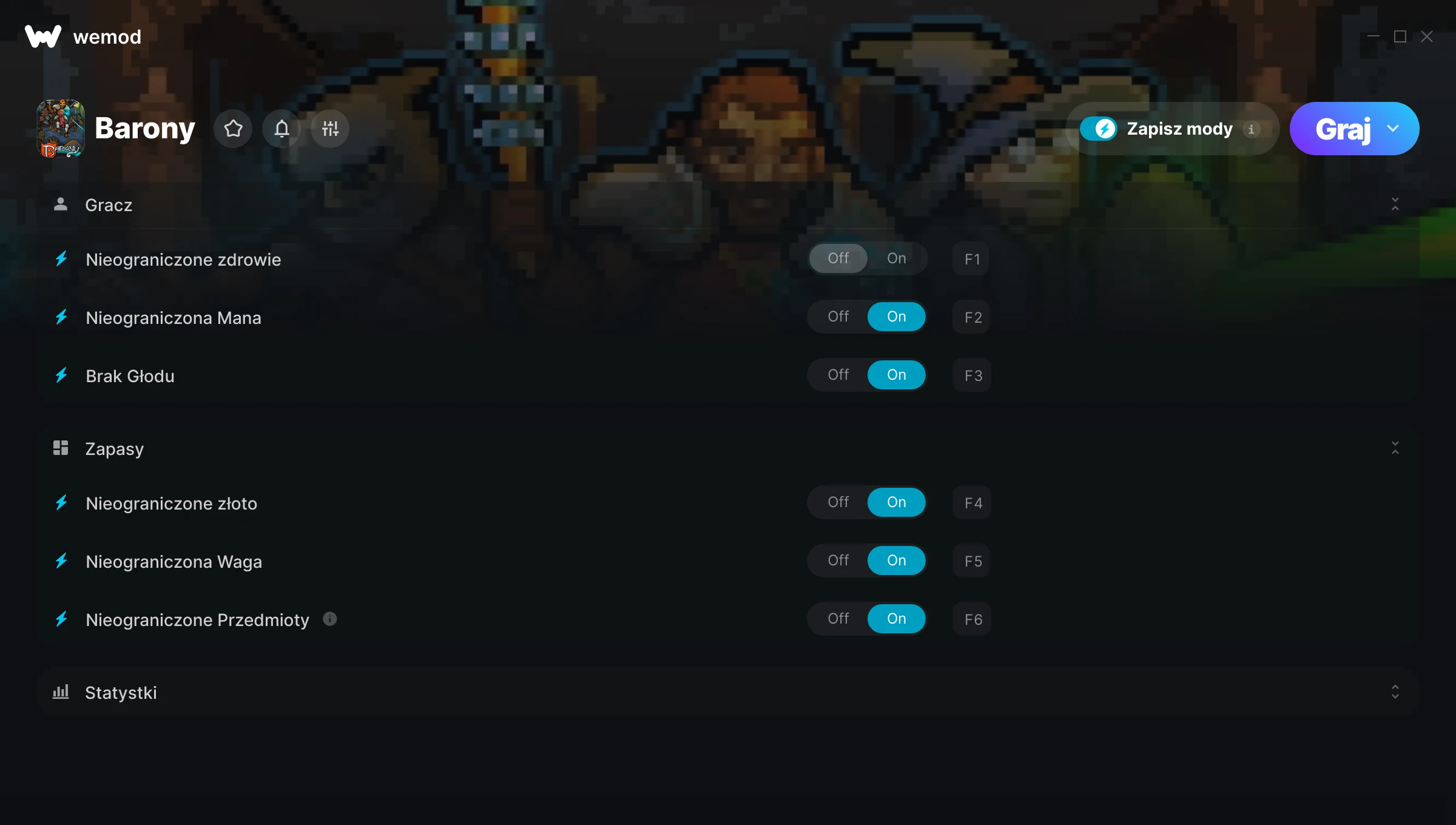 85MB Windows ...lub odwiedź nas na swoim komputerze, aby pobrać aplikację Pobierz Nieograniczone zdrowie, Nieograniczona Mana & 6 inny mod for Barony with WeMod