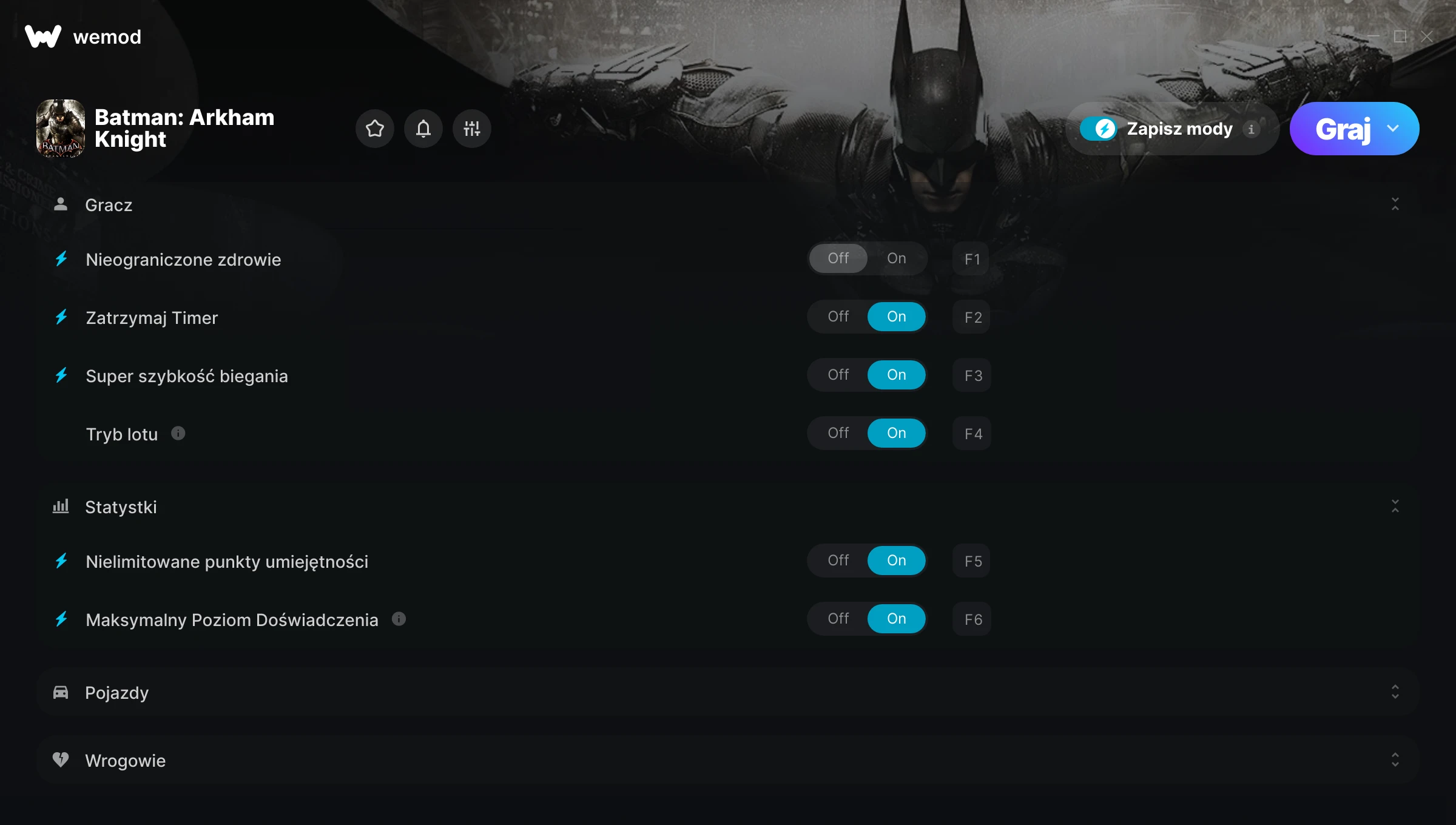 These are all fantastic additions to Arkham Knight! Unlimited Health is great for getting past those watchtowers that are usually locked behind a disruptor or RHD upgrade.