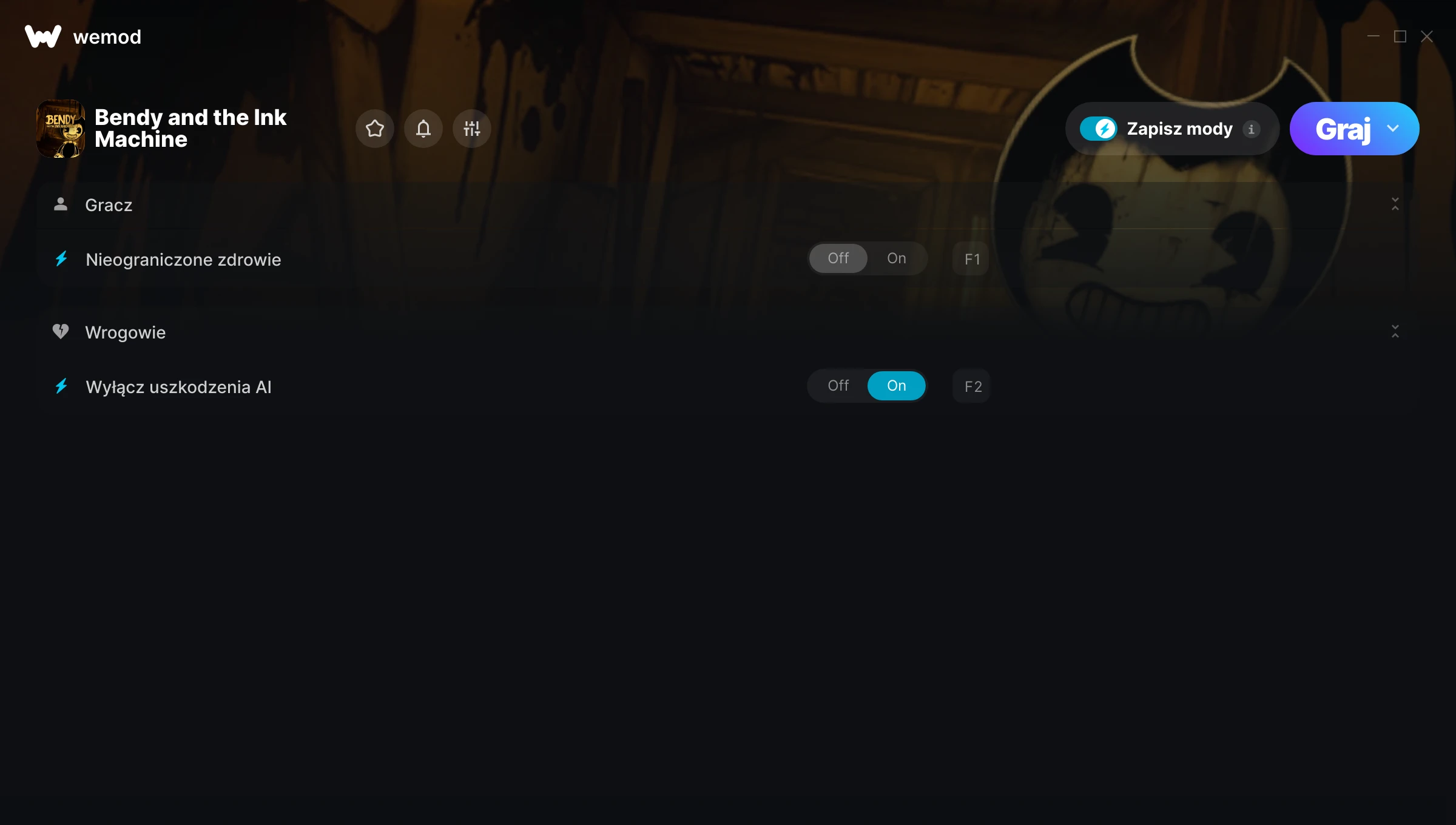 My anxiety is far less thanks to these cheats. Although, I would say that the Ink Demon + Unlimited Health = broken/repeating audio from the AI trying to kill you over and over until you hide so the Ink Demon can go away. Other than that, this is my first time trying Wemod and I can say I'm satisfied with this mod!