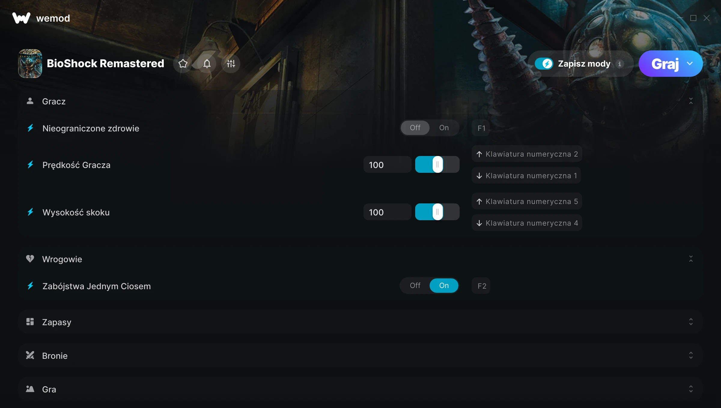 Was looking for Bioshock Remastered mods. Ammo mods to be specific. Couldn't find them anywhere but Wemod actually pulled through and gave me access to more useful mods. Thank you.