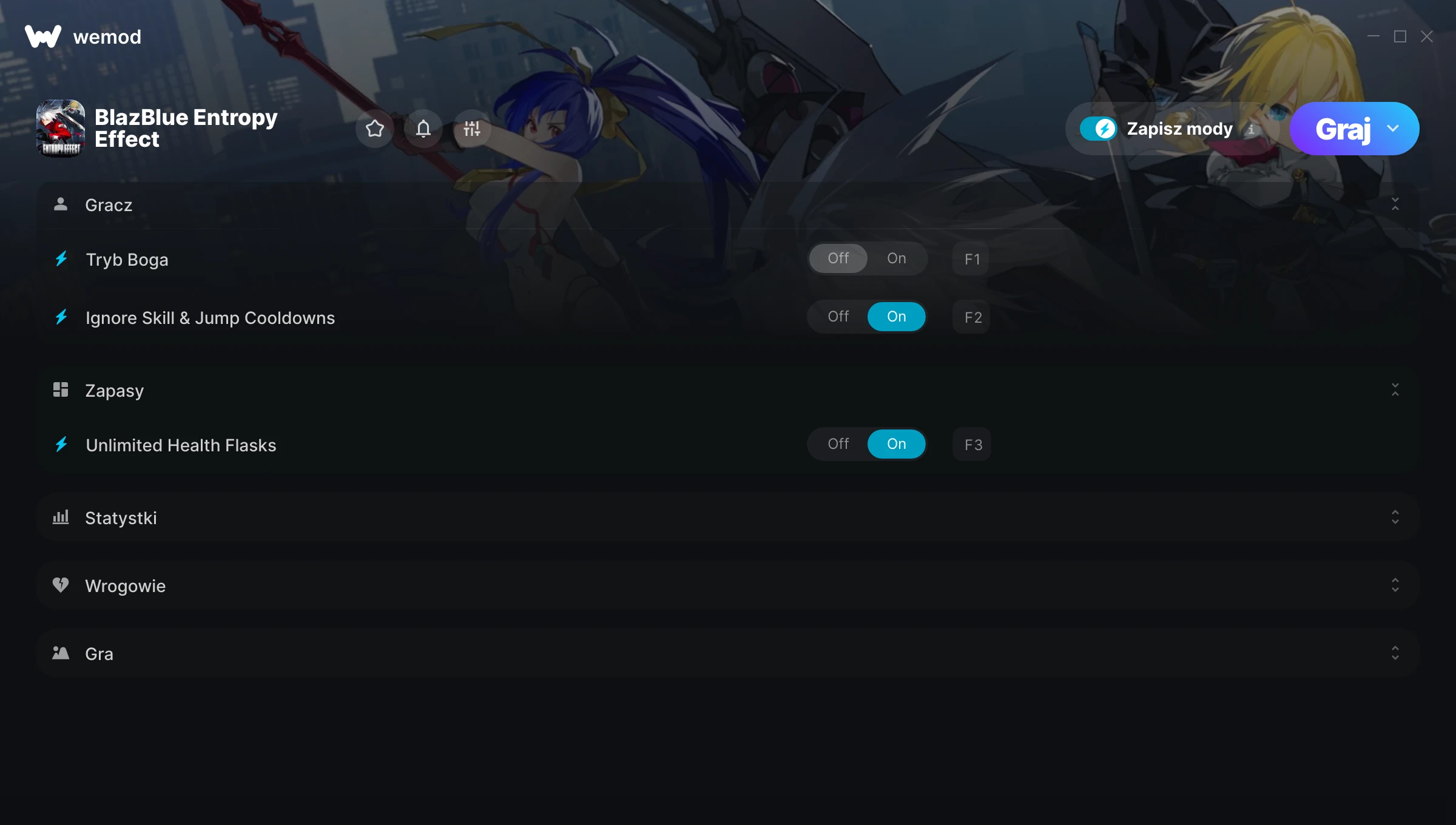 BlazBlue Entropy Effect is a blast with WeMod! Without WeMod, I probably couldn't even complete the first area. Thank you for allowing me to enjoy this game!
