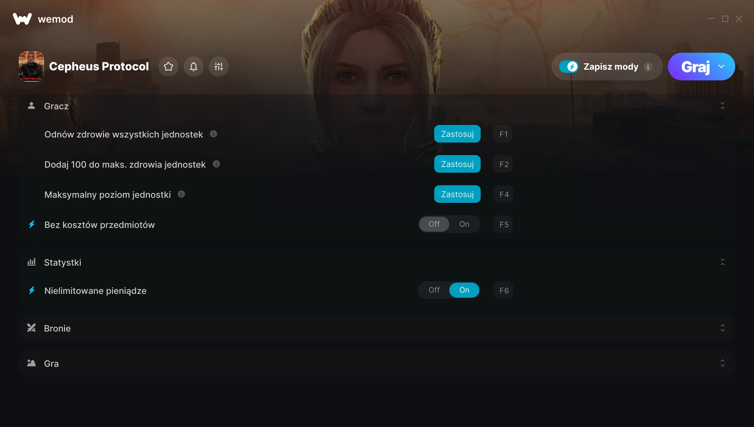 85MB Windows ...lub odwiedź nas na swoim komputerze, aby pobrać aplikację Pobierz Odnów zdrowie wszystkich jednostek, Dodaj 100 do maks. zdrowia jednostek & 9 inny mod for Cepheus Protocol with WeMod