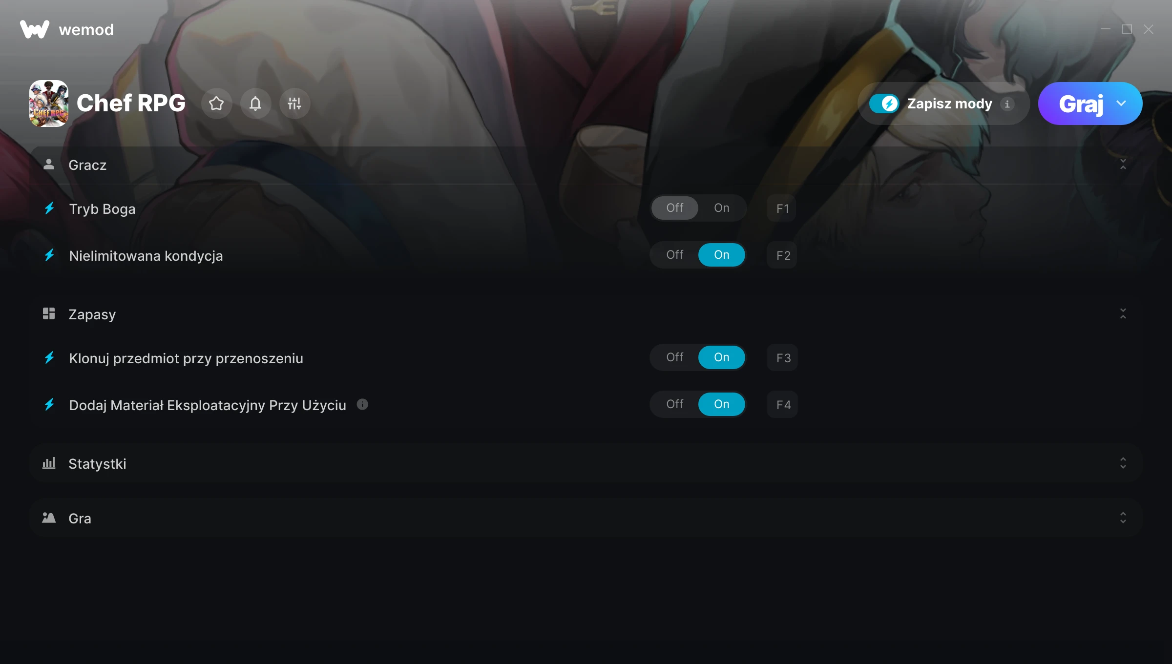 Dowiedz się więcejWeMod jest zawsze bezpieczny i darmowy dzięki naszej wielomilionowej społeczności graczy na całym świecie. Jesteśmy wspierani przez subskrybentów WeMod Pro. Sprawdź nasze recenzje na Trustpilot.