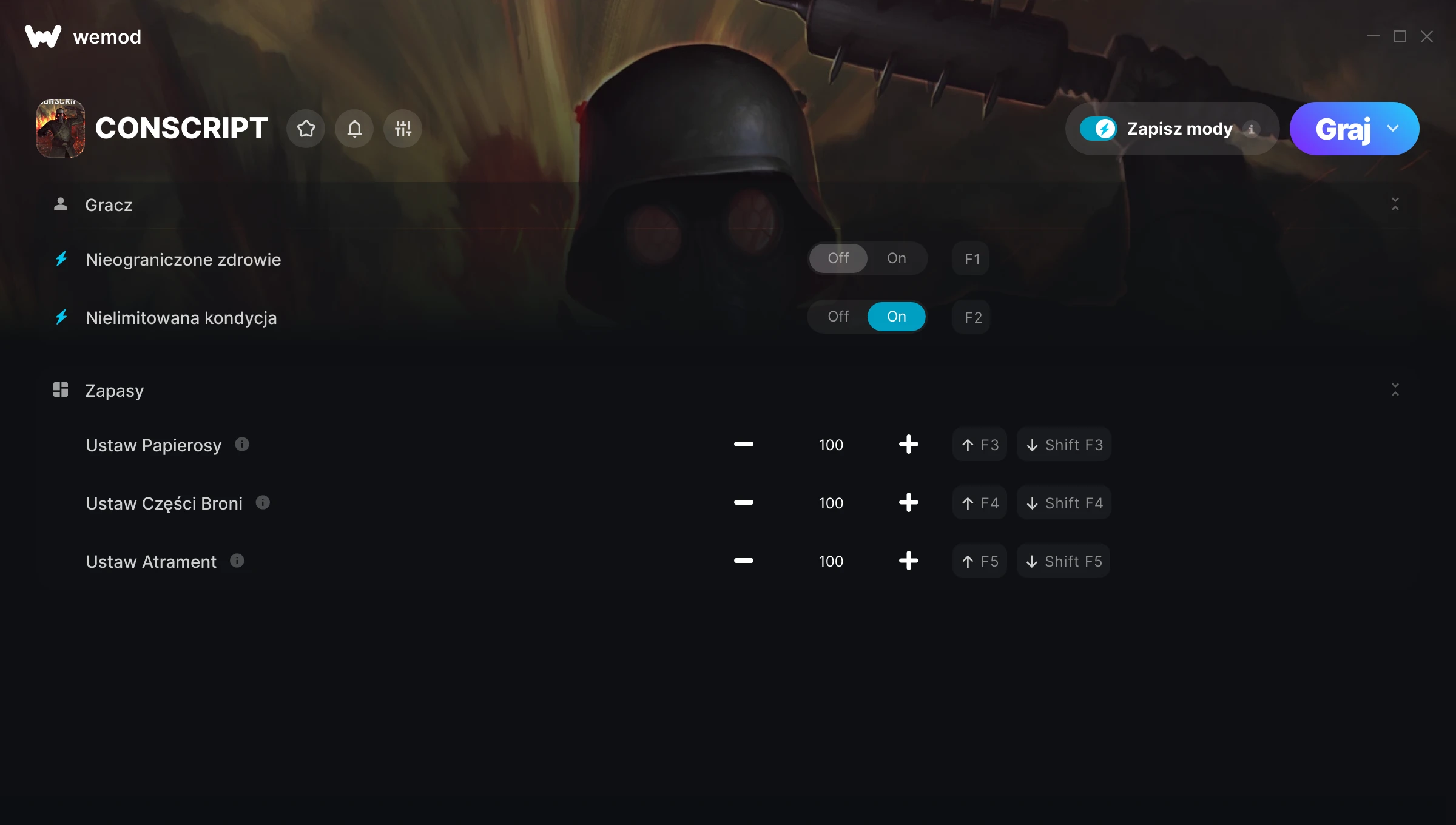 Dowiedz się więcejWeMod jest zawsze bezpieczny i darmowy dzięki naszej wielomilionowej społeczności graczy na całym świecie. Jesteśmy wspierani przez subskrybentów WeMod Pro. Sprawdź nasze recenzje na Trustpilot.