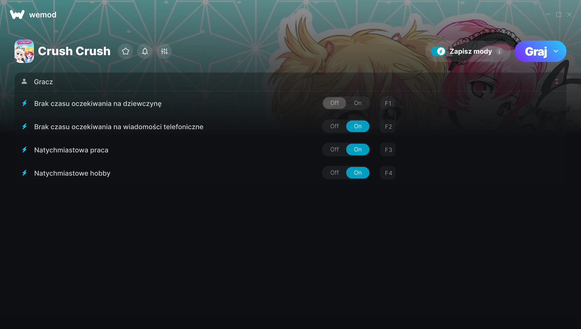 Instant Hobby works, instant job is a speed boost but doesn't Complete the job, No Girl Cooldown works, did not test phone messages.