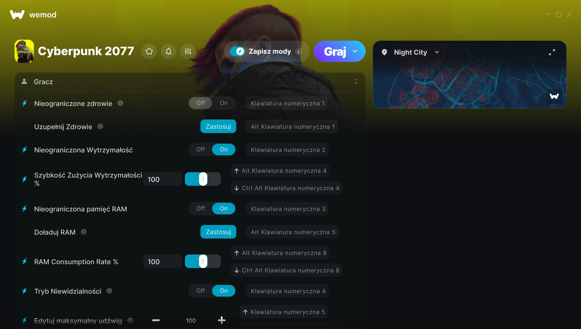 The cyberpunk 2077 cheats still works perfectly, but however the in-game win-g option still needs some work. I tried to use it from in-game option, and it does not activate the cheats at all. Even when it says it is on, it really is not working. Needs fix. Overall. Thank you for making WeMod. It is the best.