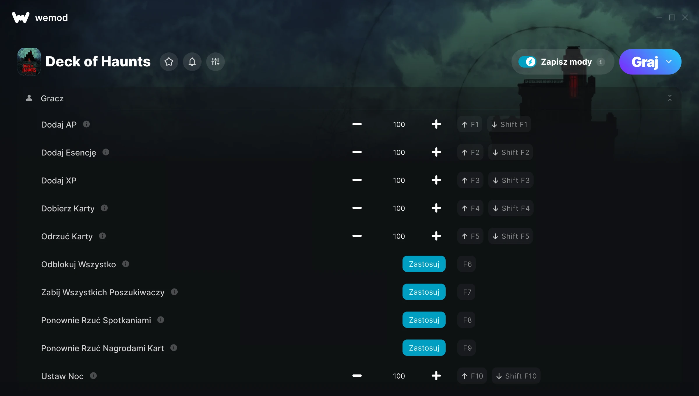 85MB Windows ...lub odwiedź nas na swoim komputerze, aby pobrać aplikację Pobierz Dodaj AP, Dodaj Esencję & 8 inny mod for Deck of Haunts with WeMod