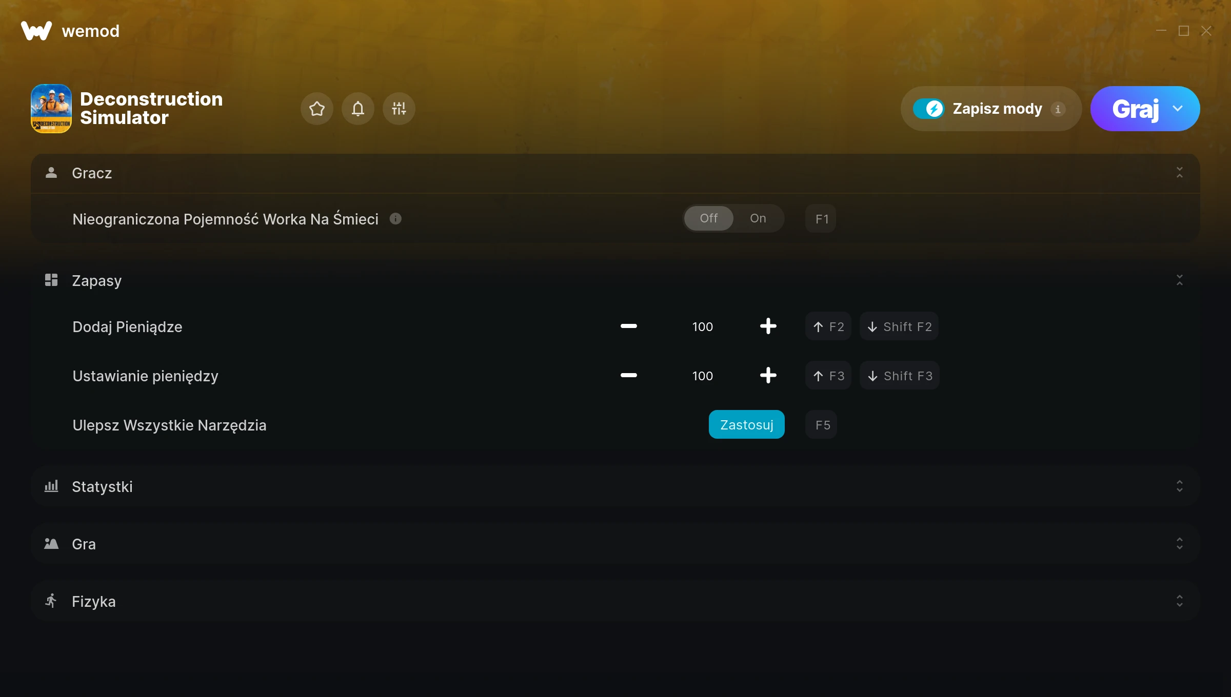 Dowiedz się więcejWeMod jest zawsze bezpieczny i darmowy dzięki naszej wielomilionowej społeczności graczy na całym świecie. Jesteśmy wspierani przez subskrybentów WeMod Pro. Sprawdź nasze recenzje na Trustpilot.