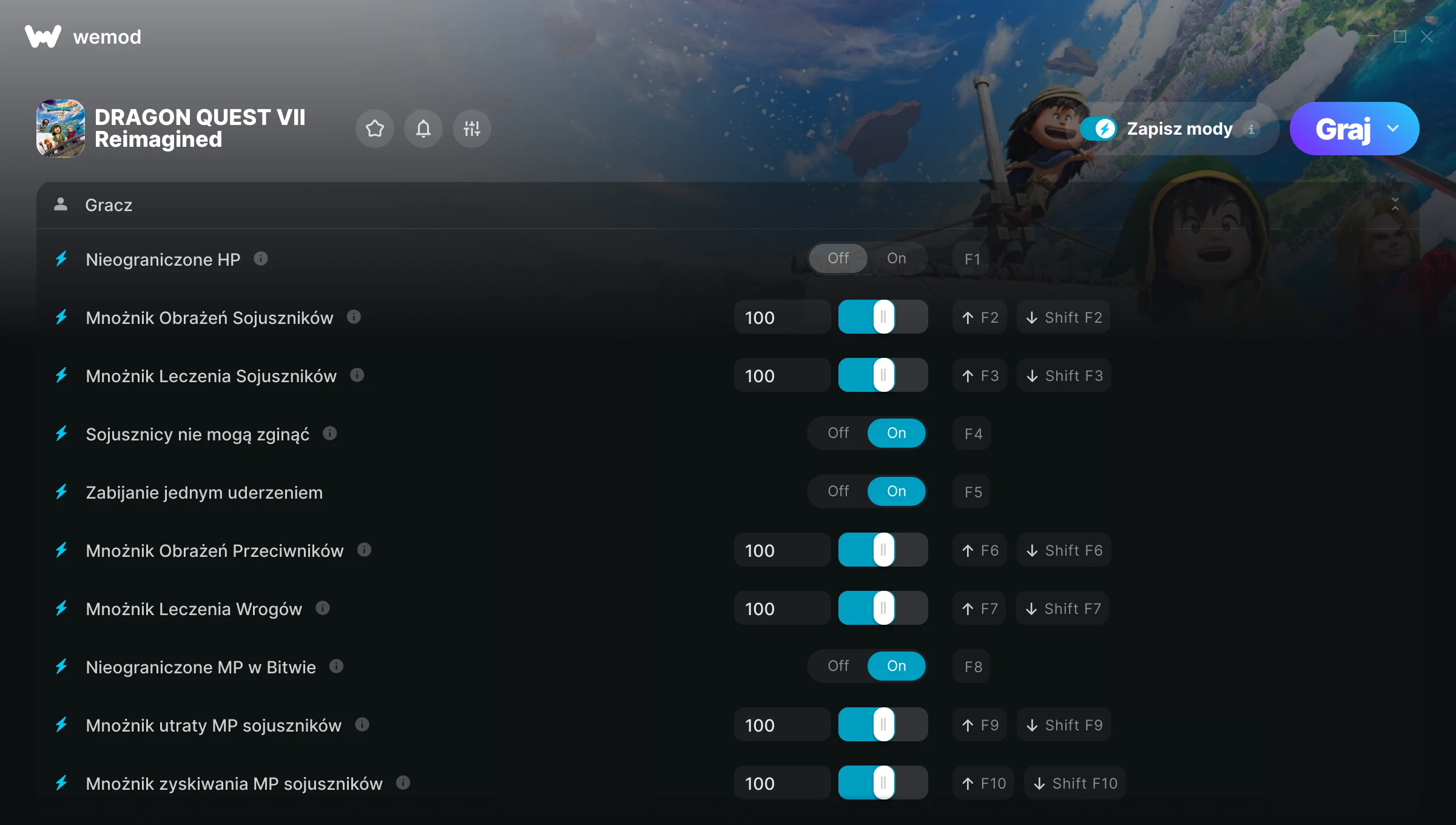 Dowiedz się więcejWeMod jest zawsze bezpieczny i darmowy dzięki naszej wielomilionowej społeczności graczy na całym świecie. Jesteśmy wspierani przez subskrybentów WeMod Pro. Sprawdź nasze recenzje na Trustpilot.