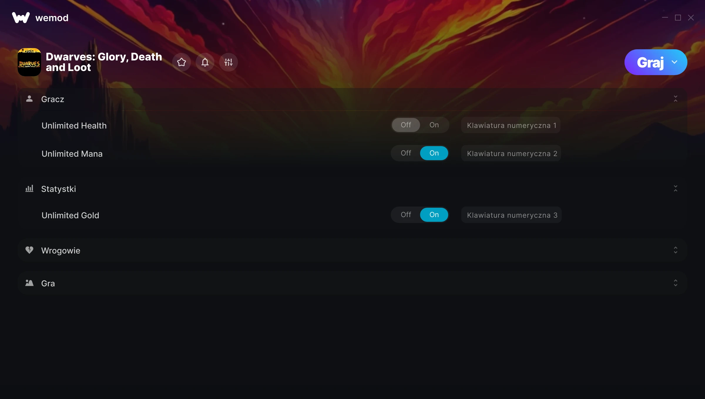 85MB Windows ...lub odwiedź nas na swoim komputerze, aby pobrać aplikację Pobierz Nieograniczone zdrowie, Nielimitowana mana & 5 inny mod for Dwarves: Glory, Death and Loot with WeMod