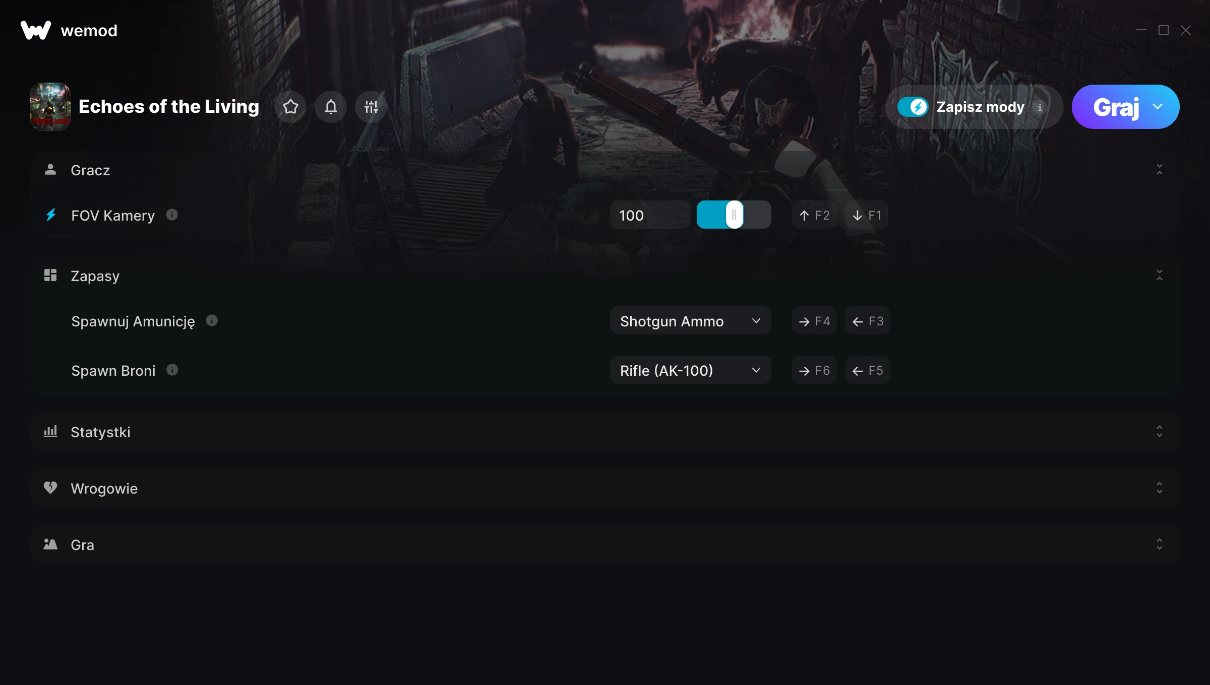 85MB Windows ...lub odwiedź nas na swoim komputerze, aby pobrać aplikację Pobierz FOV Kamery, Spawnuj Amunicję & 7 inny mod for Echoes of the Living with WeMod