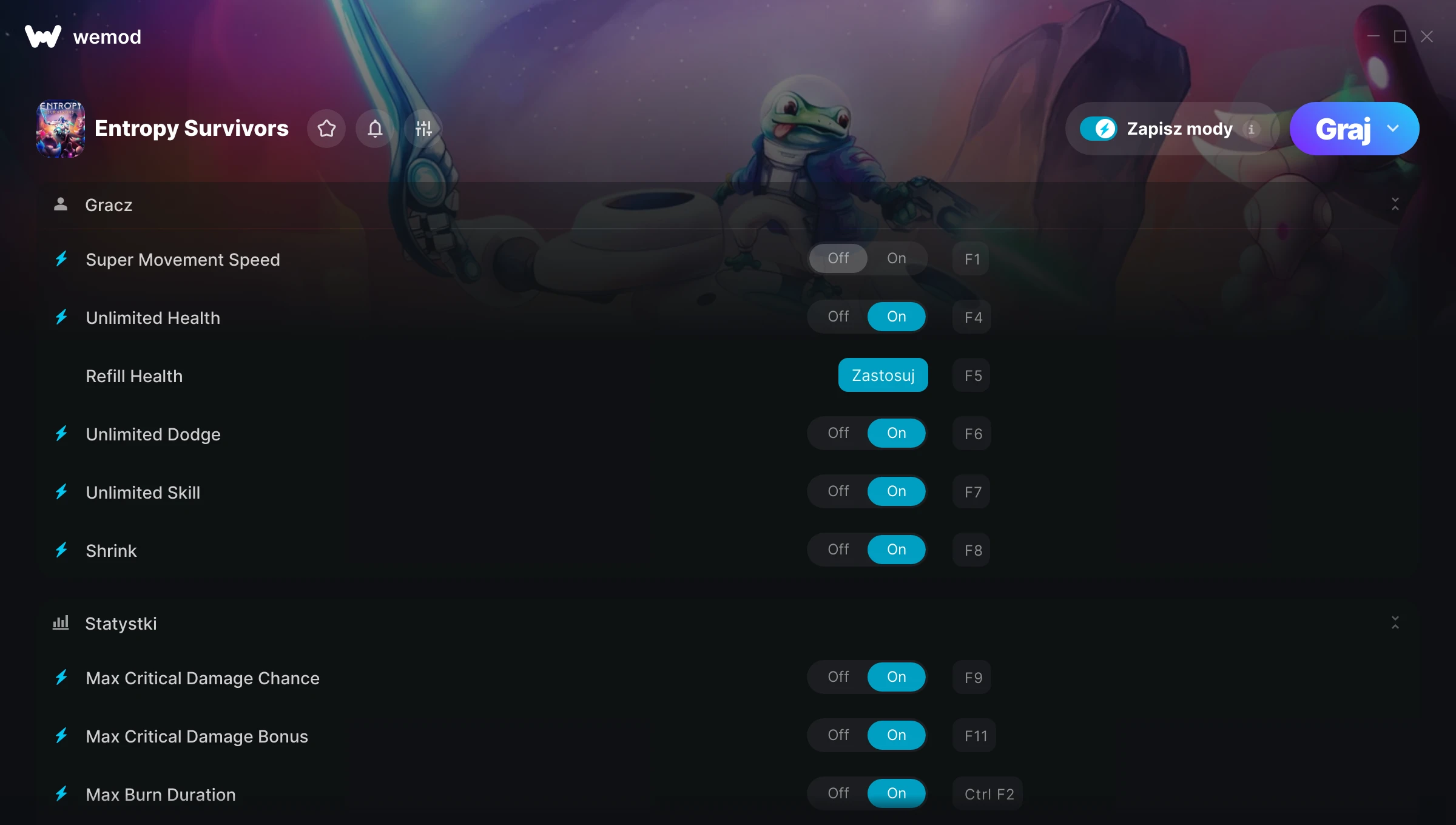 85MB Windows ...lub odwiedź nas na swoim komputerze, aby pobrać aplikację Pobierz Super szybkość ruchu, Mnożnik Prędkości Ruchu & 31 inny mod for Entropy Survivors with WeMod