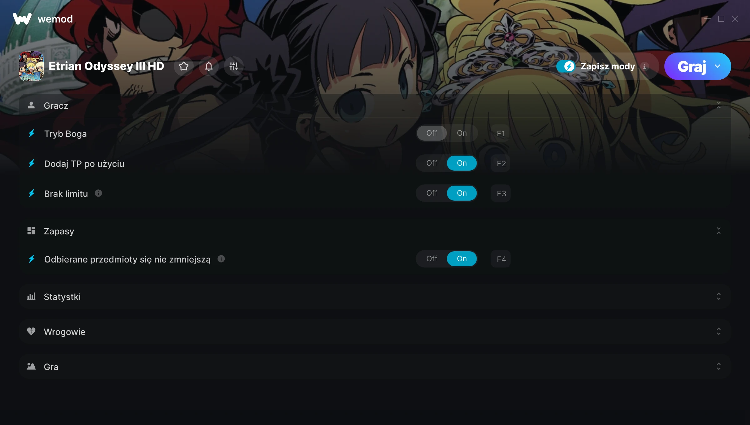 Dowiedz się więcejWeMod jest zawsze bezpieczny i darmowy dzięki naszej wielomilionowej społeczności graczy na całym świecie. Jesteśmy wspierani przez subskrybentów WeMod Pro. Sprawdź nasze recenzje na Trustpilot.