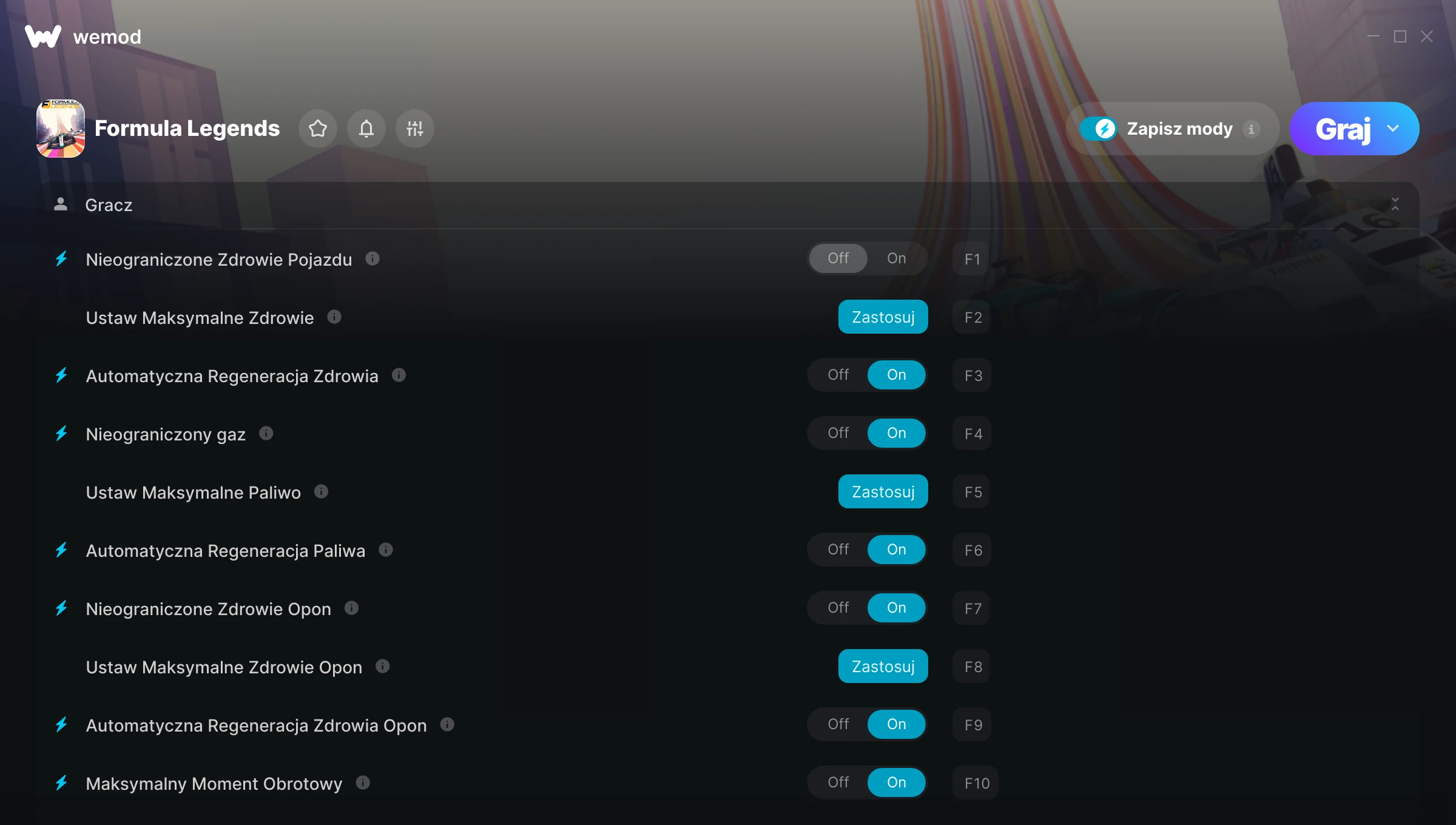 85MB Windows ...lub odwiedź nas na swoim komputerze, aby pobrać aplikację Pobierz Nieograniczone Zdrowie Pojazdu, Ustaw Maksymalne Zdrowie & Inne mody: 23 for Formula Legends with WeMod