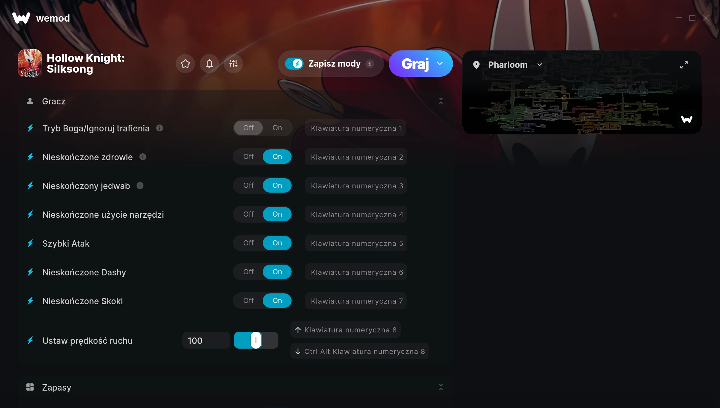 Wemod is super cool and really helped me as a casual gamer who loves both Hollow Knight games, letting me get through both games with some assistance when I otherwise wouldn't have had the skill to do so.