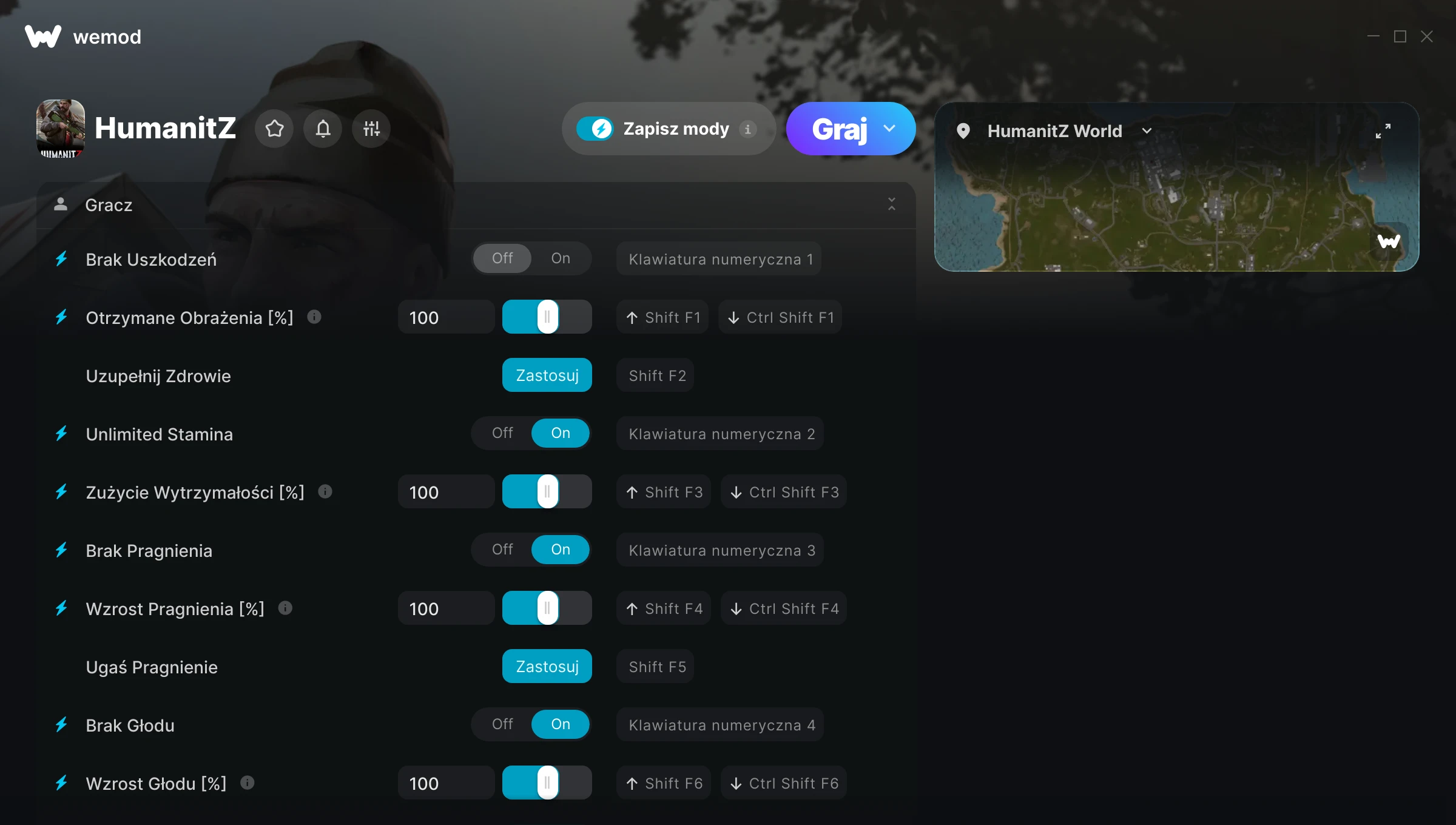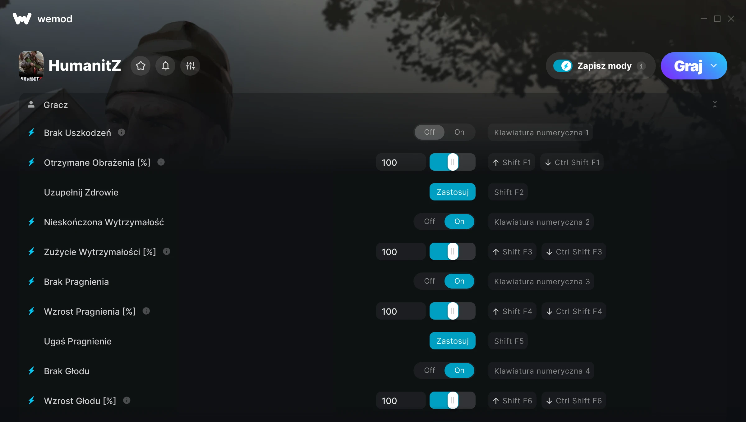 So far I tested Unlimited ammo, Unlimited Stamina, No weight, unlimited Weapon Dur, They all worked fine.