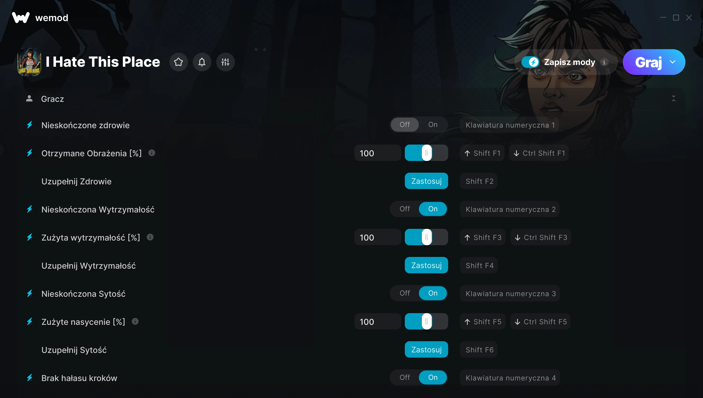 85MB Windows ...lub odwiedź nas na swoim komputerze, aby pobrać aplikację Pobierz Nieskończone zdrowie, Otrzymane Obrażenia [%] & 20 inny mod for I Hate This Place with WeMod