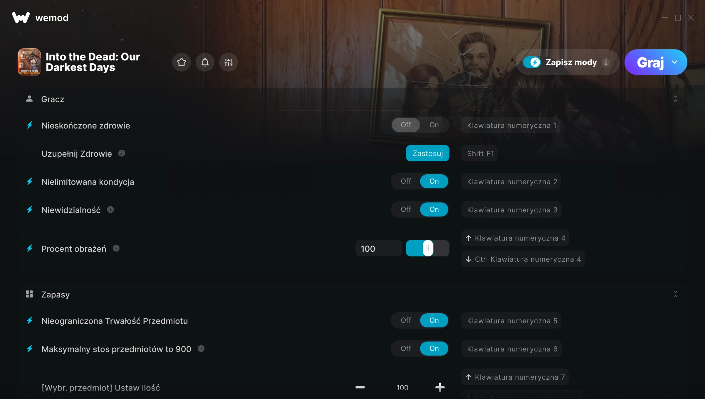 85MB Windows ...lub odwiedź nas na swoim komputerze, aby pobrać aplikację Pobierz Nieskończone zdrowie, Uzupełnij Zdrowie & 21 inny mod for Into the Dead: Our Darkest Days with WeMod