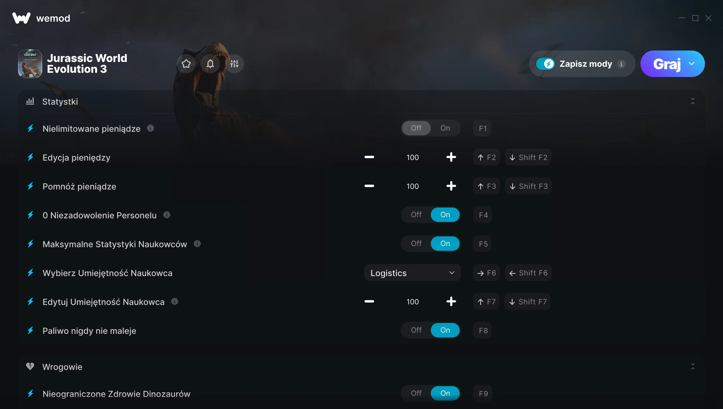 Trenerzy i cheaty dla Jurassic World Evolution 3