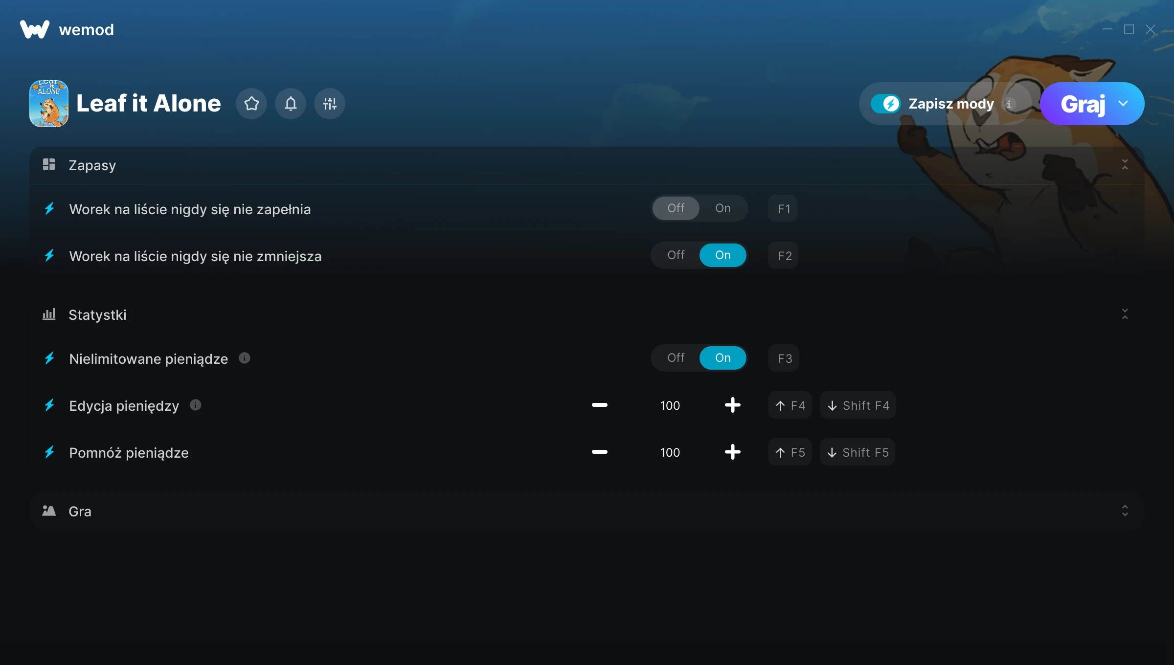 85MB Windows ...lub odwiedź nas na swoim komputerze, aby pobrać aplikację Pobierz Worek na liście nigdy się nie zapełnia, Worek na liście nigdy się nie zmniejsza & Inne mody: 4 for Leaf it Alone with WeMod