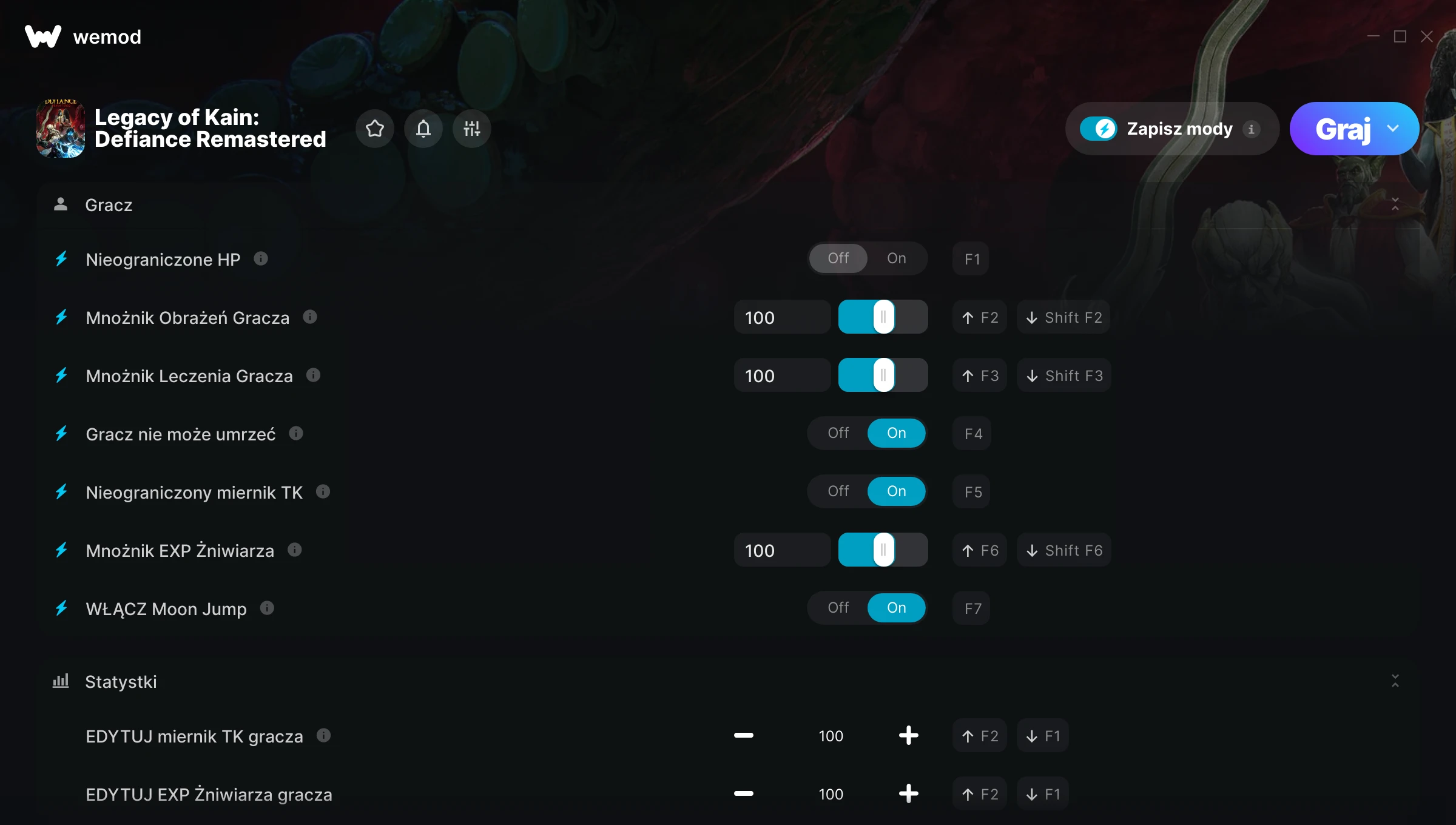 85MB Windows ...lub odwiedź nas na swoim komputerze, aby pobrać aplikację Pobierz Nieograniczone HP, Mnożnik Obrażeń Gracza & 7 inny mod for Legacy of Kain: Defiance Remastered with WeMod