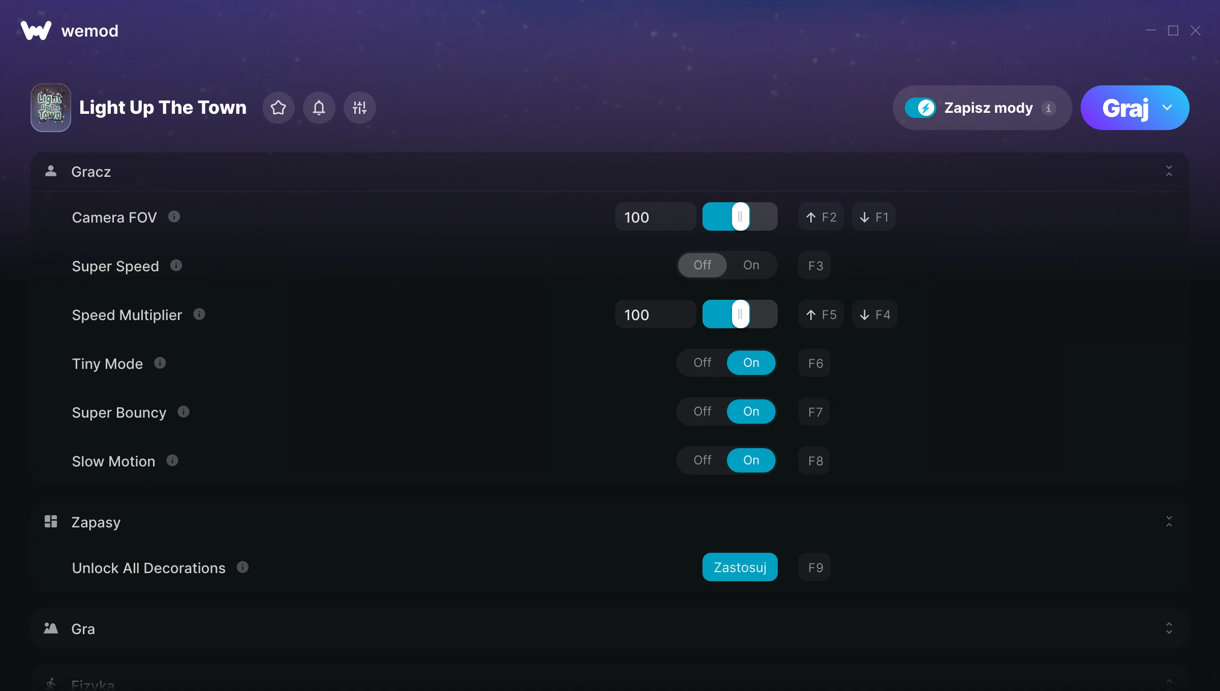 85MB Windows ...lub odwiedź nas na swoim komputerze, aby pobrać aplikację Pobierz FOV Kamery, Super prędkość & 9 inny mod for Light Up The Town with WeMod
