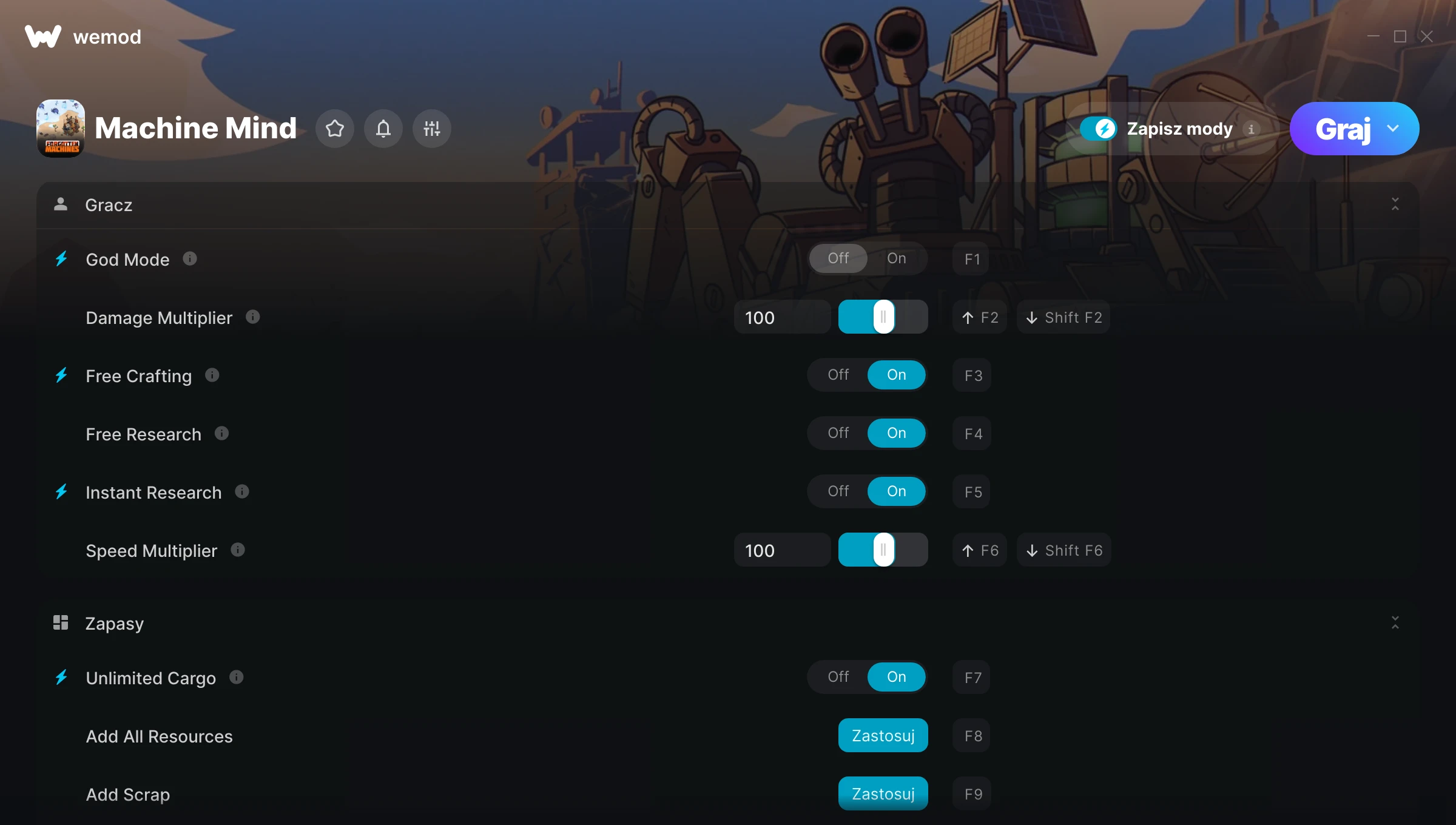 Trenerzy i cheaty dla Machine Mind