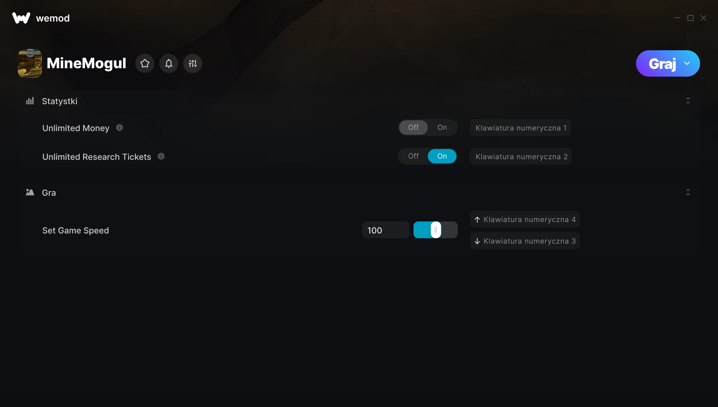 Dowiedz się więcejWeMod jest zawsze bezpieczny i darmowy dzięki naszej wielomilionowej społeczności graczy na całym świecie. Jesteśmy wspierani przez subskrybentów WeMod Pro. Sprawdź nasze recenzje na Trustpilot.